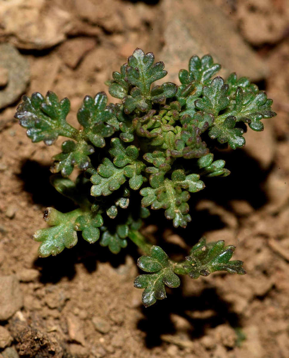 Im Frühjahr erscheinen bis zu 7 Blätter pro Pflanze, die Blattstiele verzweigen sich zunächst unterirdisch 2 - 3 mal dreiteilig, oberirdisch meist mit drei 5 - 10 mm langen Blättchen, die in 3 - 5 elliptische, blaugrüne, fleischige, stumpfe oder spitz 4 - 7 mm lang und 1 - 2 mm breite Blattlappen zergliedert sind