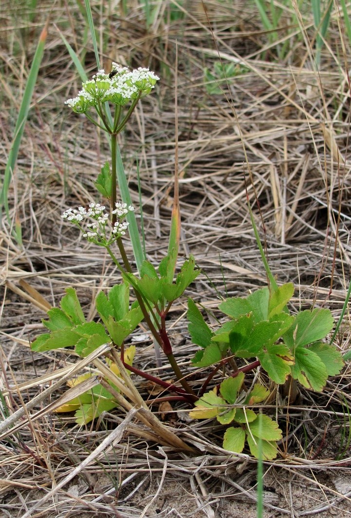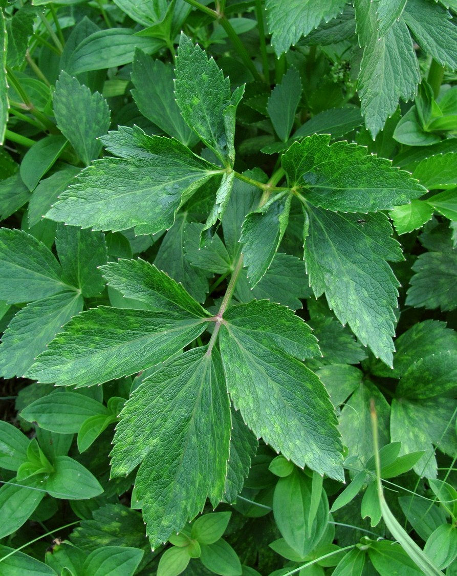 Grundblätter dreifach 3- zählig, 5 - 20 cm lang, gestielt, mit Blattscheide