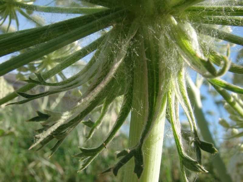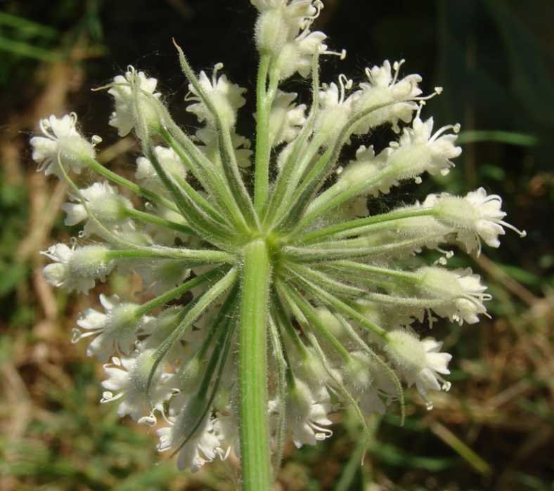 Dolde mit 20 - 40 behaarten Doldenstrahlen