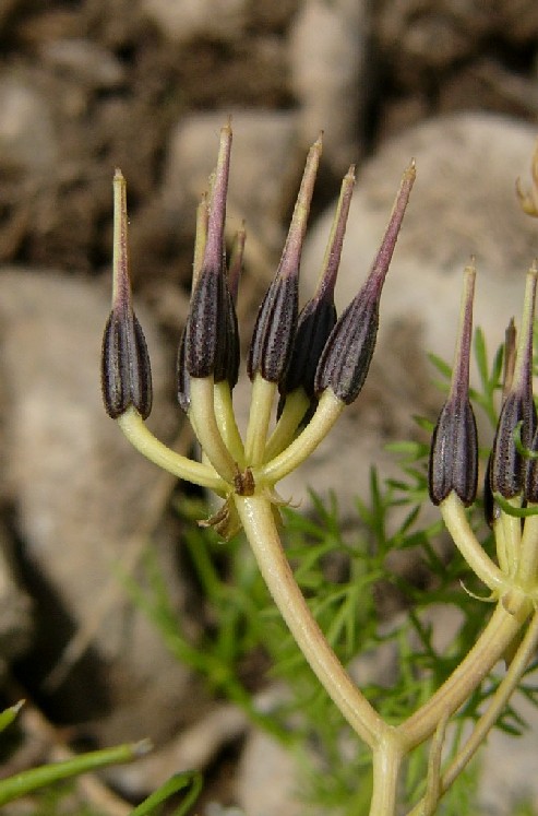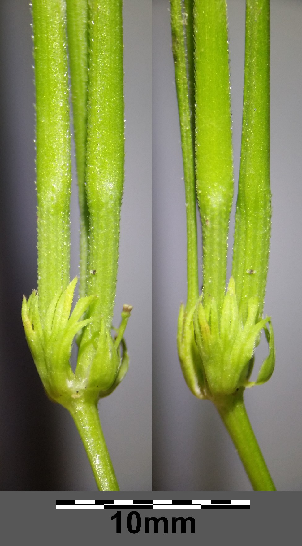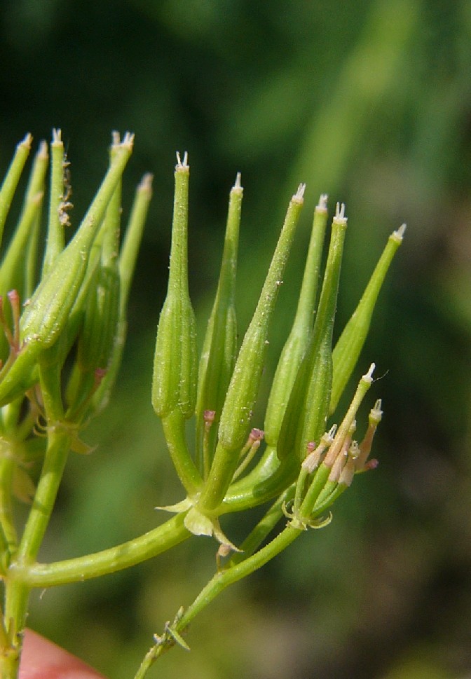 3 Hüllchenblätter linealisch- lanzettlich, 2 - 3 mm lang, nach unten geschlagen, bald abfallend, Früchte 20 - 30 mm lang, Griffel 0,5 mm lang