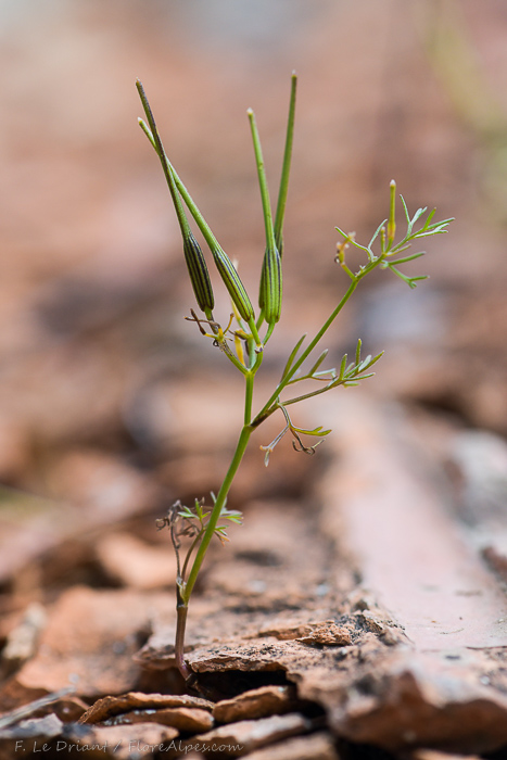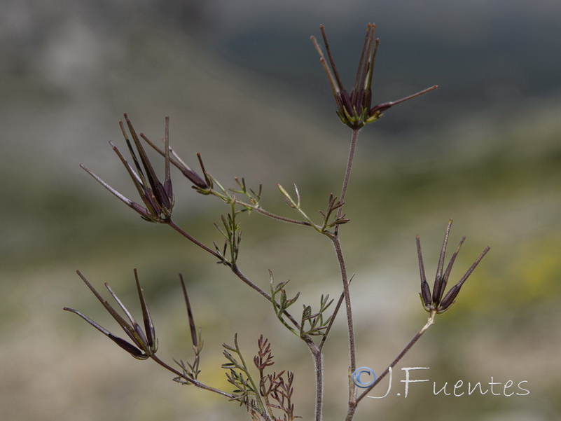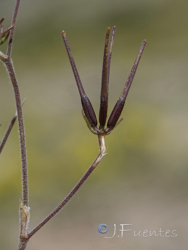 oder fiederteilig, aufrecht oder zurückgeschlagen, bleibend Früchte 50 - 75 mm lang, Griffel 0,8 - 2 mm lang Fruchtschnabel 3 - 7 mal so lang wie der samentragende Teil, seitlich zusammengedrückt > 4