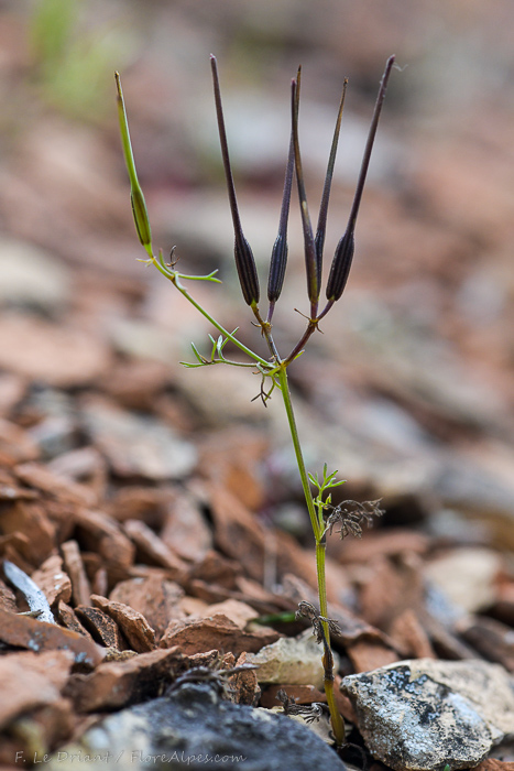 lanzettlich, 2 - 3 mm lang, nach unten geschlagen, bald abfallend Früchte 20 - 30 mm lang, Griffel 0,5 mm lang Fruchtschnabel 2 - 3 mal so lang wie der samentragende Teil, kaum zusammengedrückt > 3