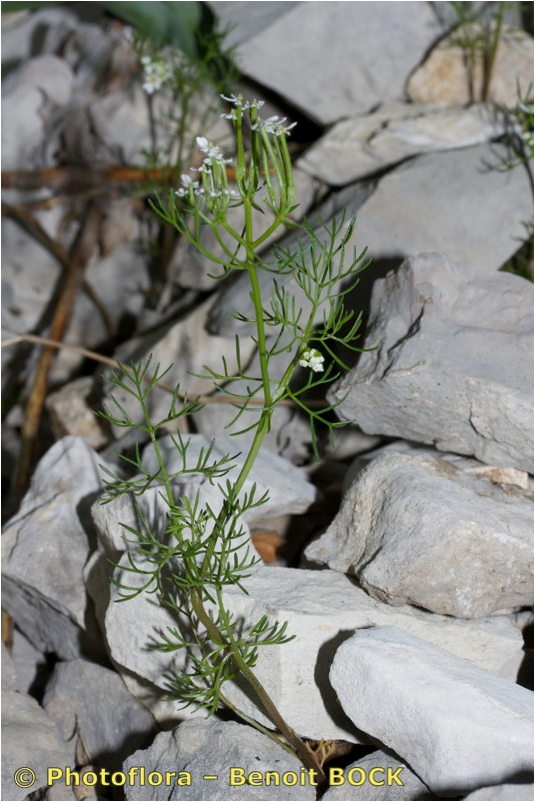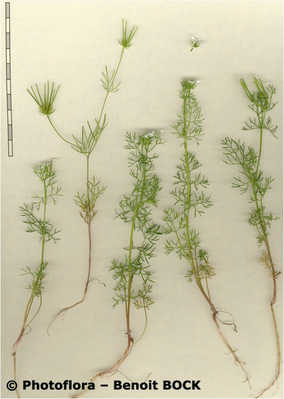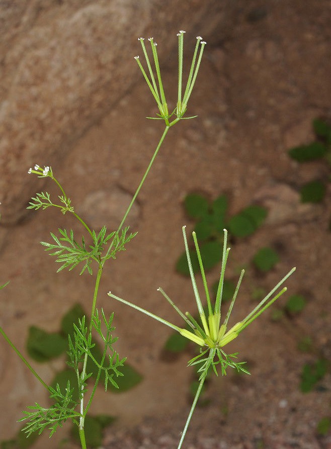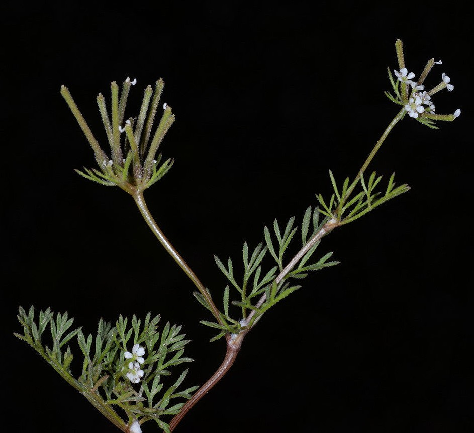 Döldchen 2 - 10- blütig, Hüllchenblätter fiederteilig, mit ungleich langen, linealischen Abschnitten, ohne häutigen Rand