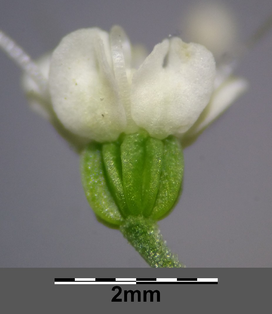 Kronblätter weiß, Griffel 1 - 1,5 mm lang, spreizend, länger als das Griffelpolster