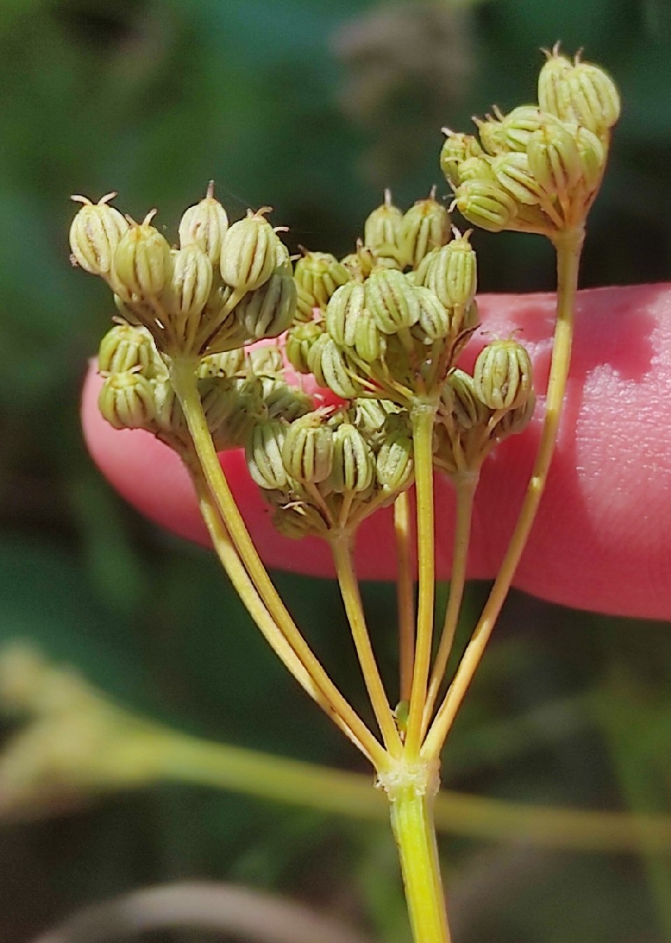 fach gefiedert, Fiederabschnitte 10 - 20 mal so lang wie breit Dolden 10 - 15- strahlig Früchte mit kurzen Griffeln, alle Rippen der Früchte +/- gleich > 1