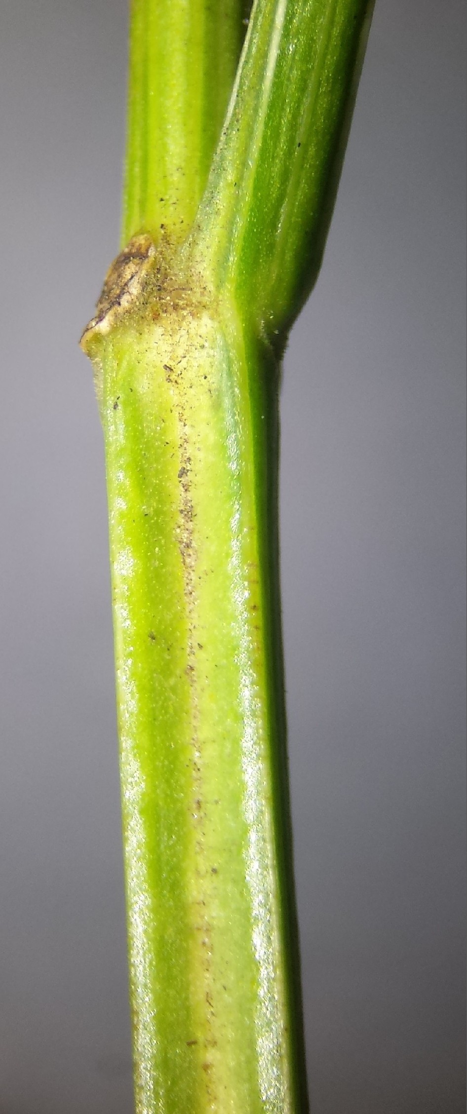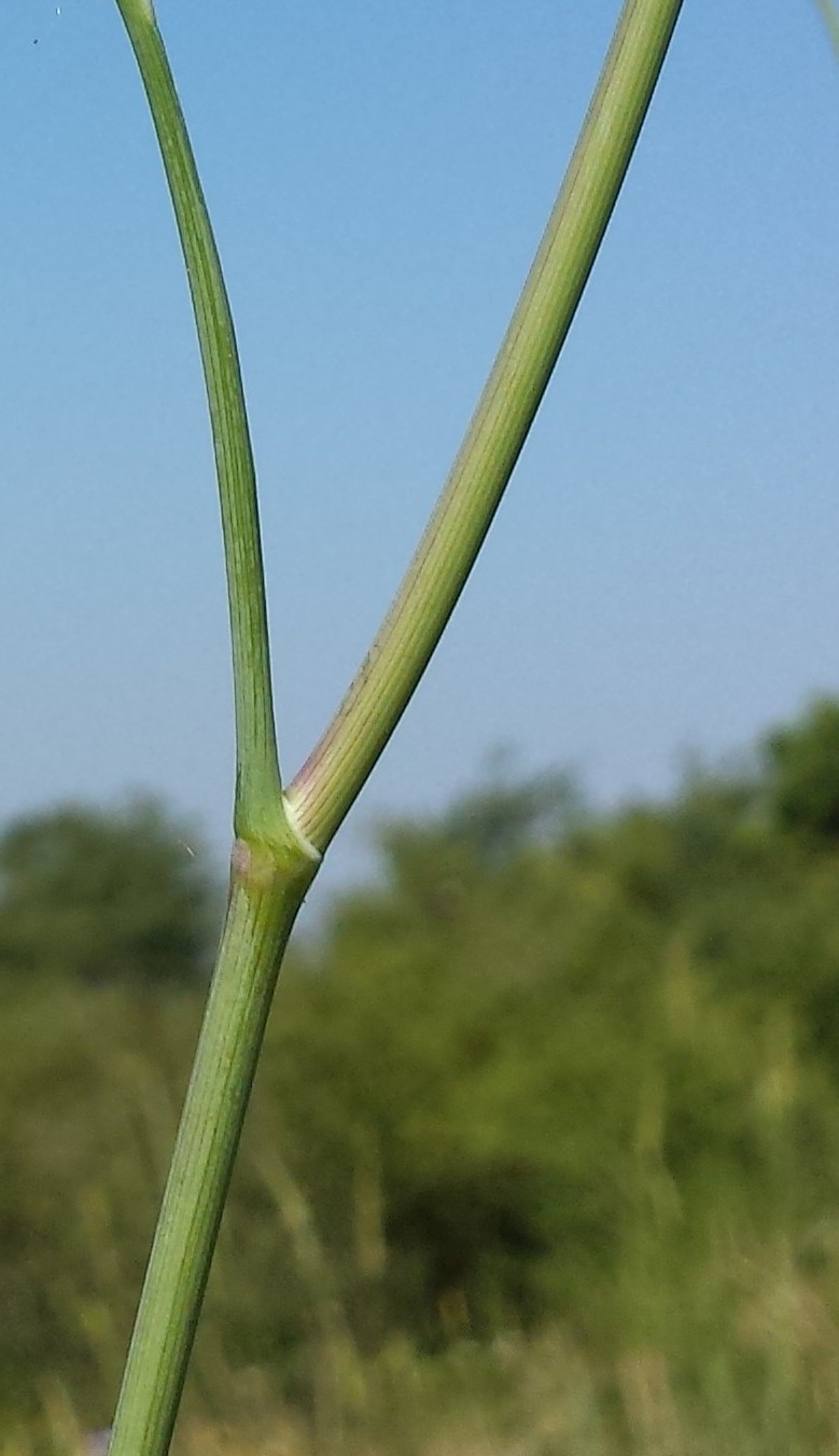 Stängel kahl, blaugrün, meist bereift, rund, schwach gerillt, nicht kantig