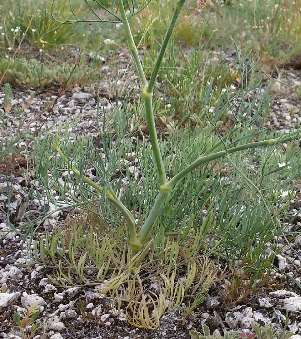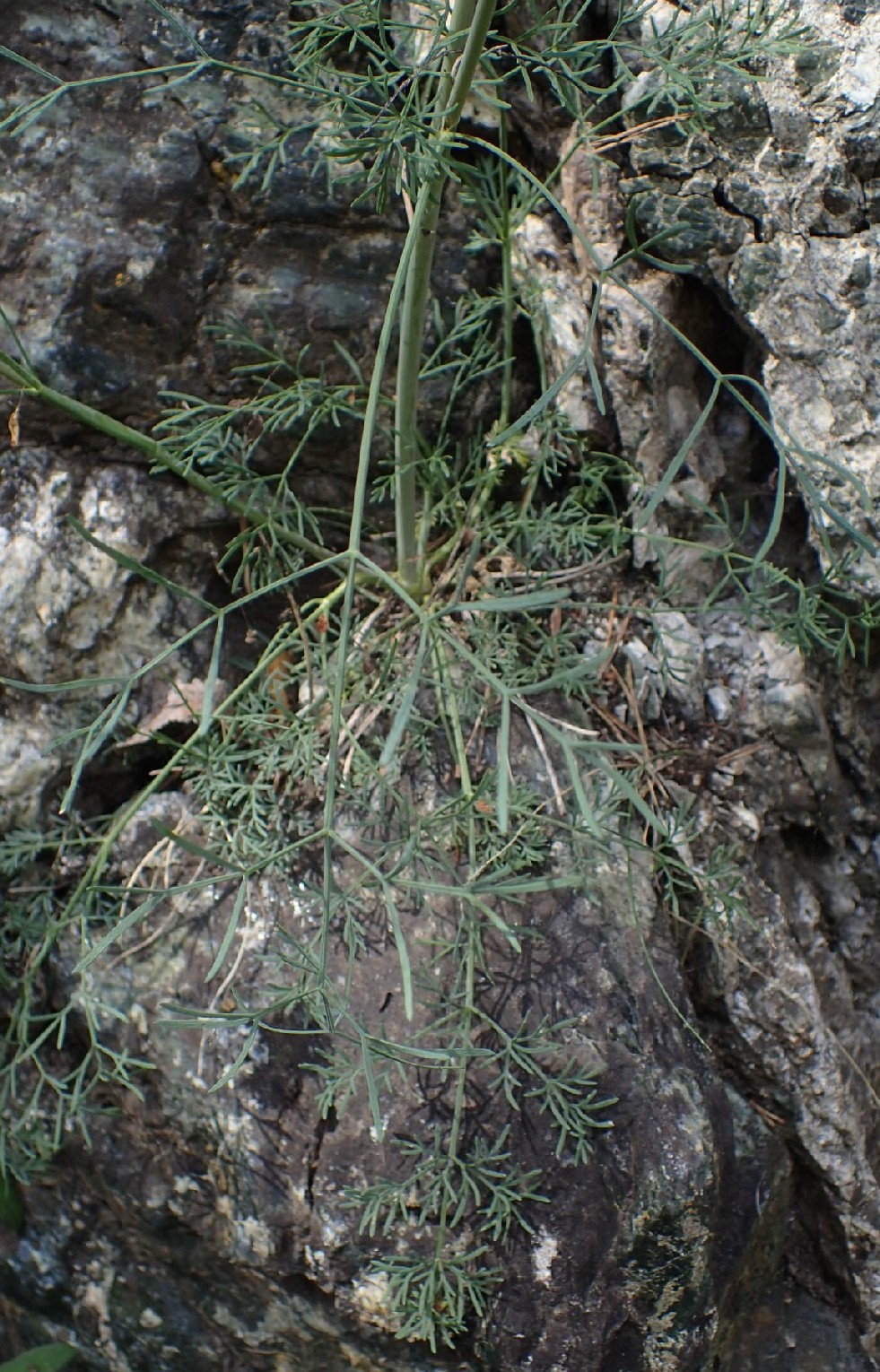 Grundblätter bläulichgrün, 3 - 4- fach gefiedert, 20 - 30 cm lang, Rhachis nicht rinnig