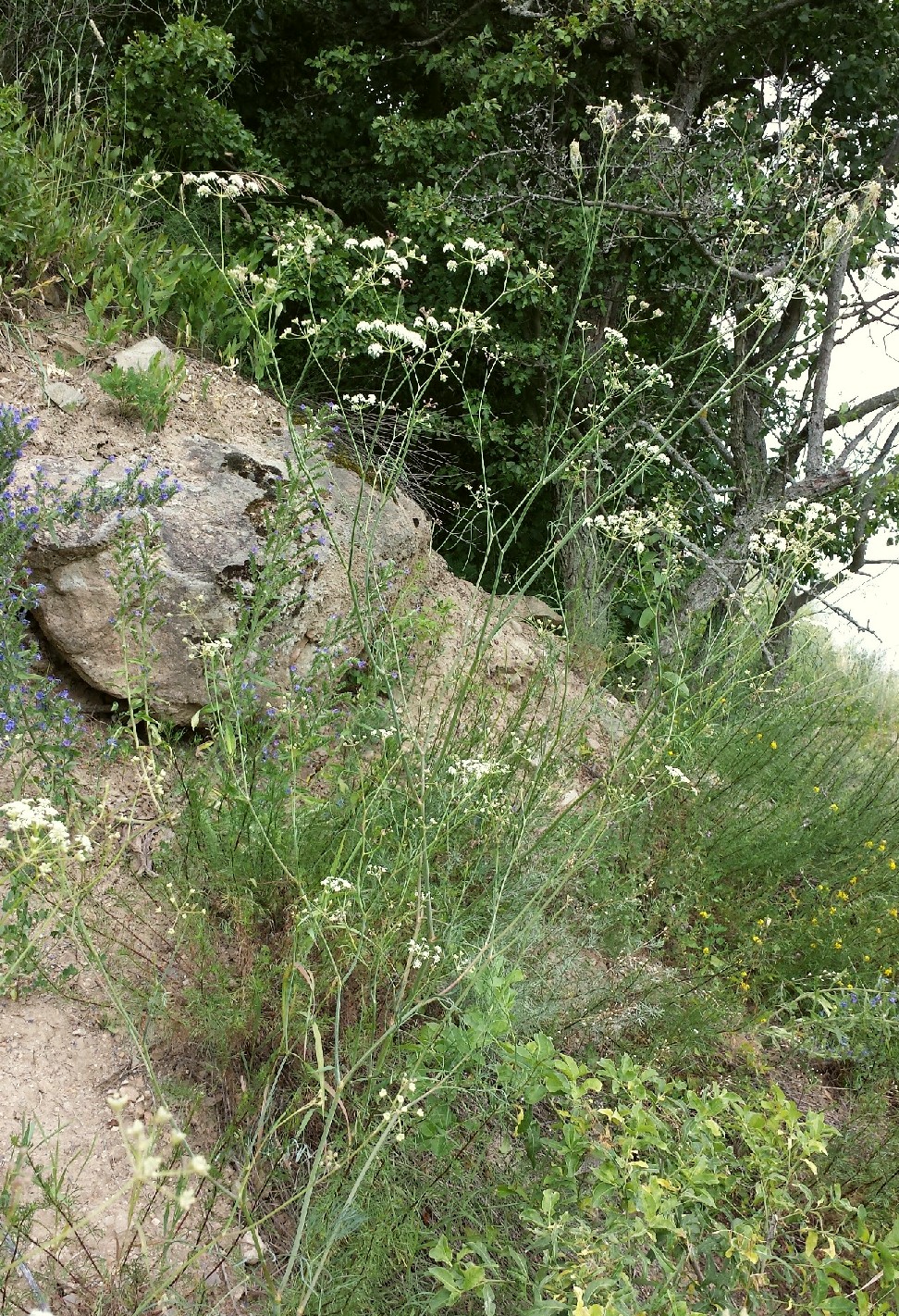 Seseli - Blüten weiß, Dolde ohne Hülle oder mit 1 - 3 bald abfallenden Hüllblättern, mit 8 - 25 kahlen Doldenstrahlen, Hüllchenblätter nicht verwachsen, Blätter blaugrün, 2 - 3- fach gefiedert, Fiederabschnitte fädlich