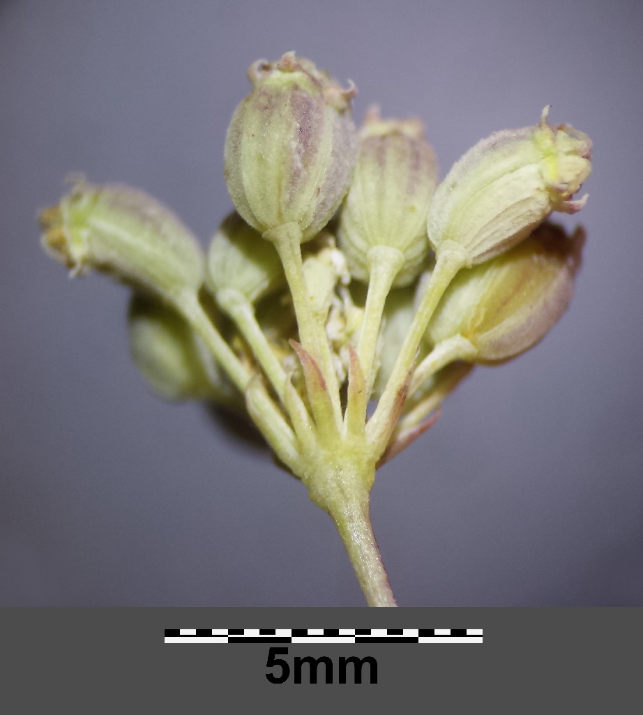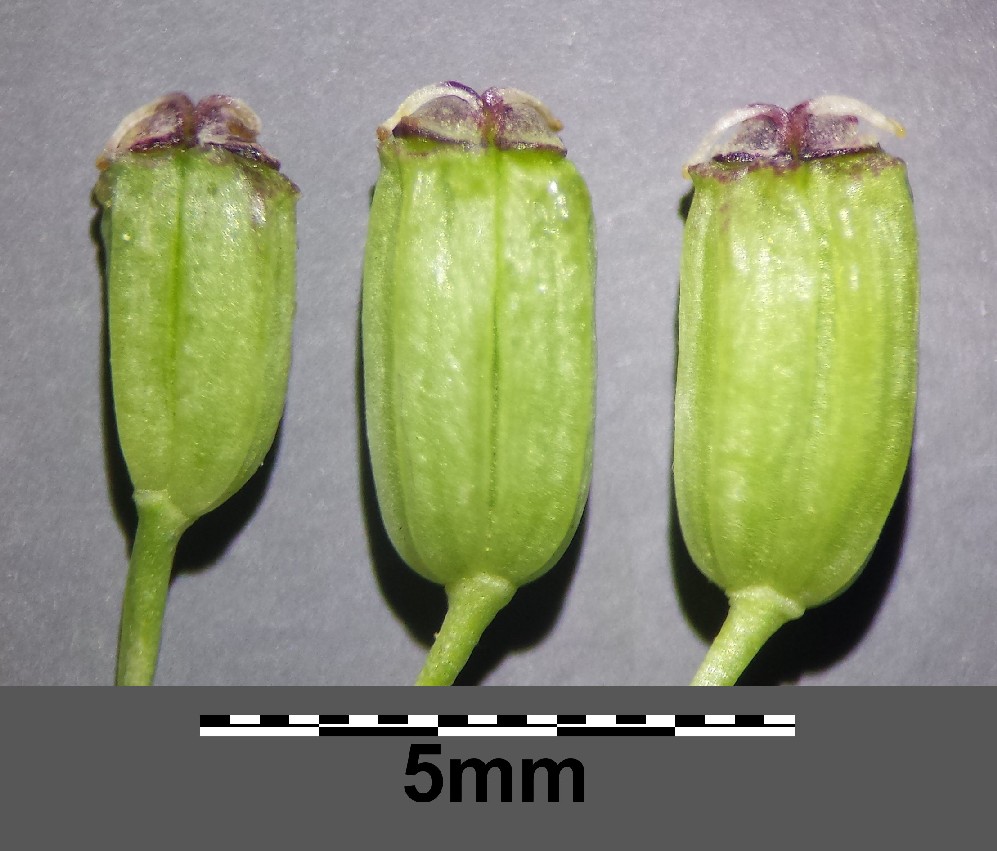 Frucht eiförmig, ca. 3 mm lang, schwach gerillt, mit