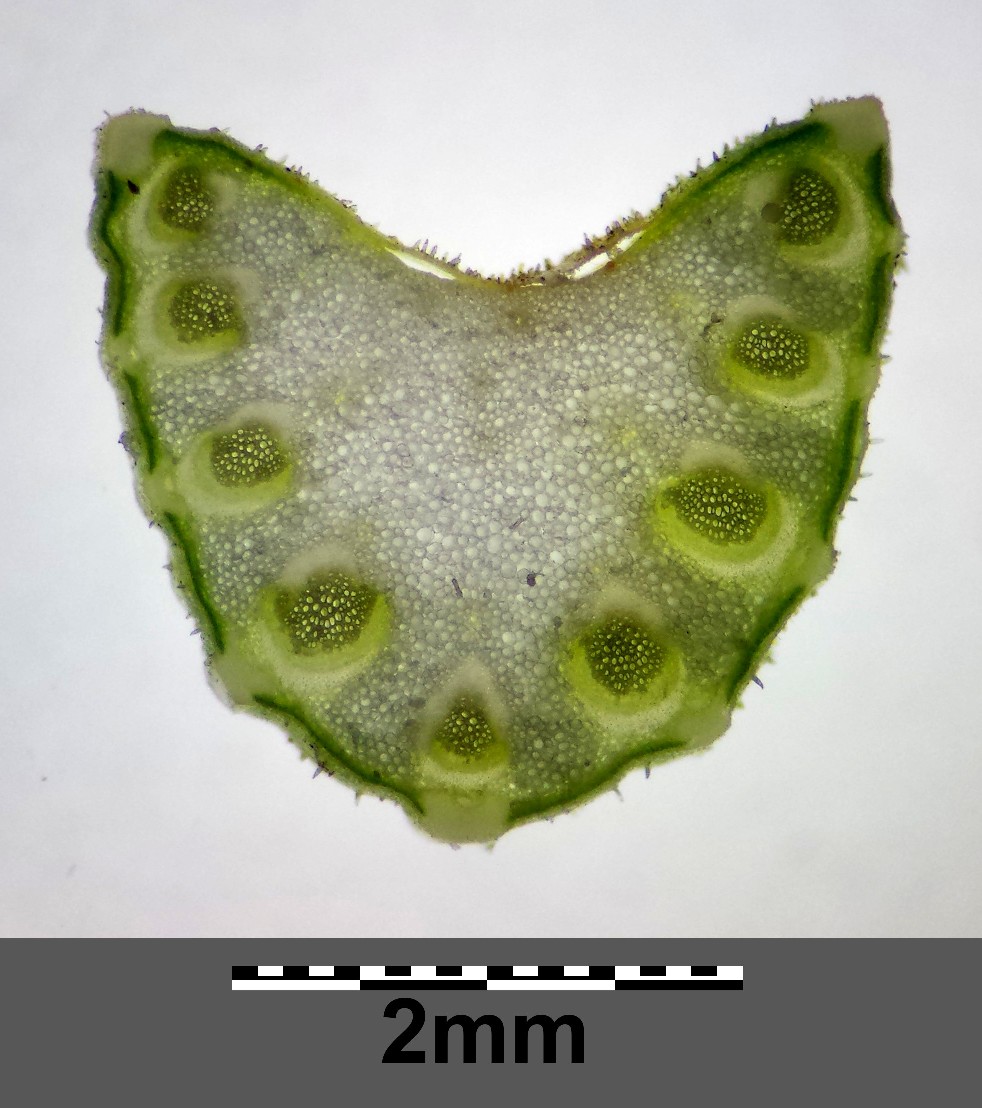 Schüppchen im Querschnitt mit 2 Ölstriemen zwischen je 2 Rippen > 3