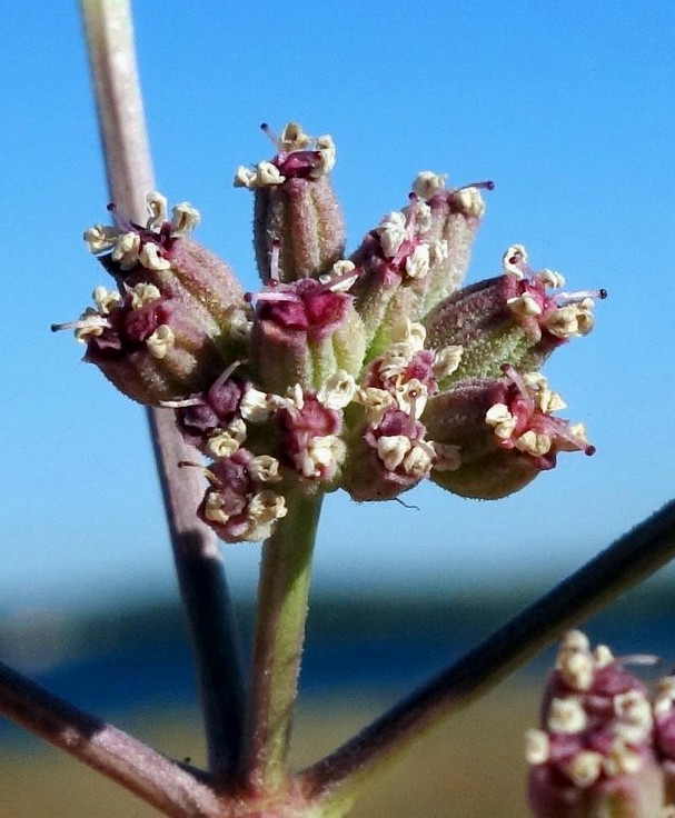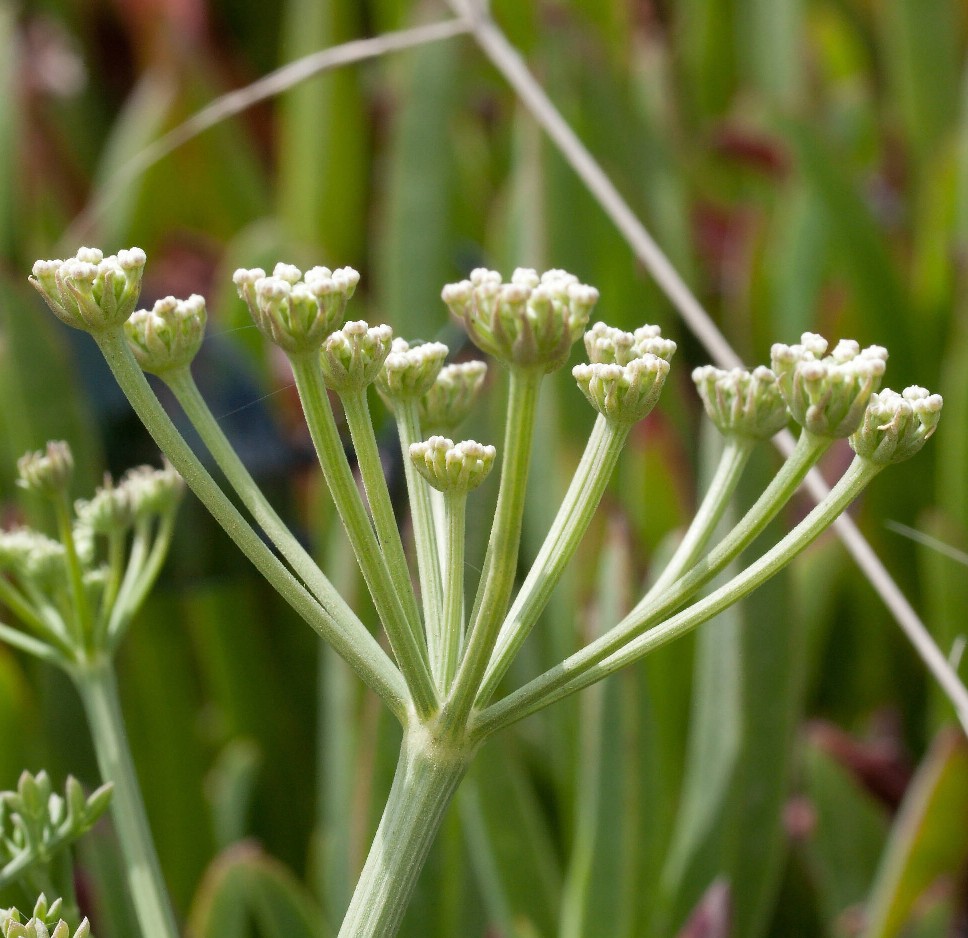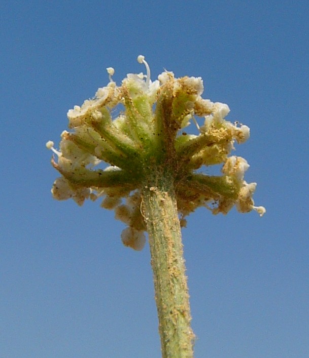Stängel sparrig verzweigt, mit mehr als 25 +/- dicht stehenden Dolden
