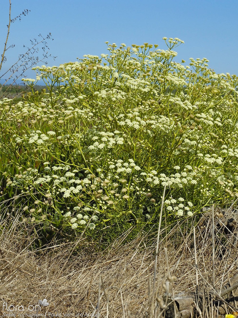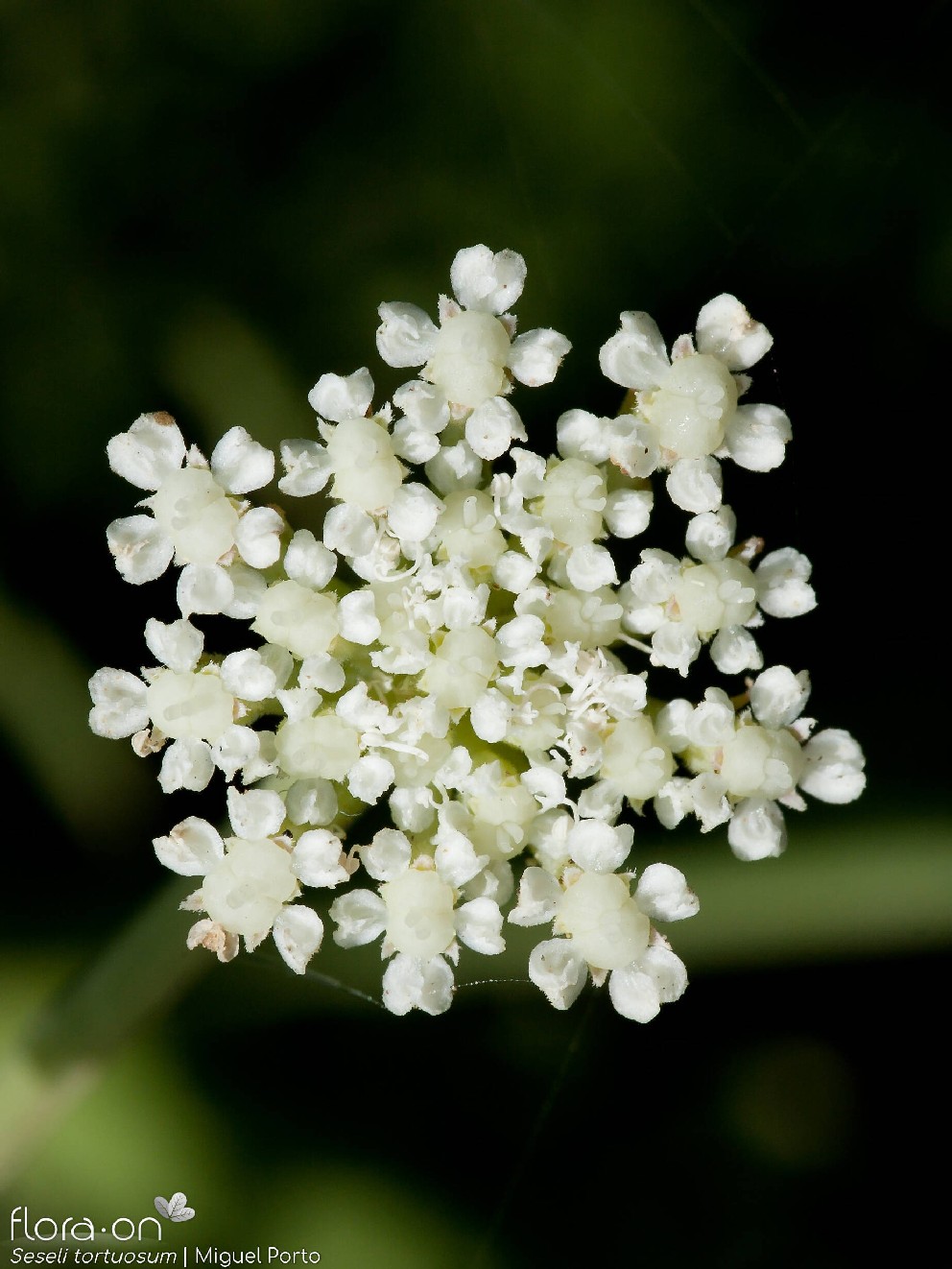 Seseli - Pflanze niederliegend oder aufrecht, mit mehr als 35 Dolden, Blüten weiß, Dolde ohne oder mit 1 - 3 bald abfallenden Hüllblättern, Stängel kräftig, Blätter grün, Fiederabschnitte der Blätter kurz