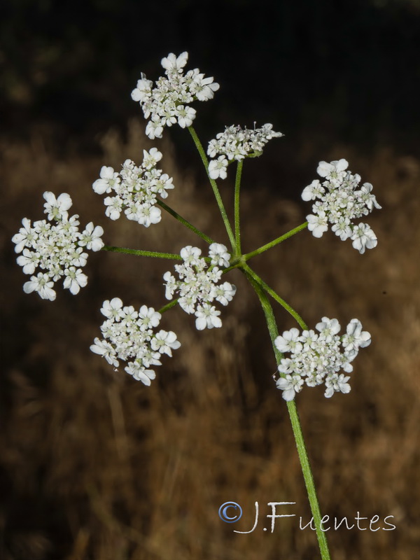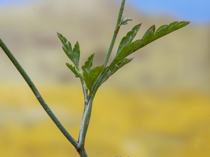 3 Dolden mit 4 - 5 Doldenstrahlen, Pflanze maximal 30 cm groß, von Grund an reich und abstehend verzweigt