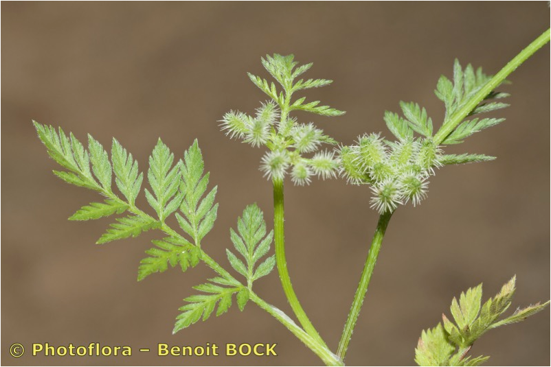 III - VI, Straßenränder, Brachland (0 - 1000 m) Synonyme: English name: Weltweite Verbreitung: 2n = 22 Etymologie: Diese Art ist zwar in der Flora Iberica beschrieben, allerdings werden die homokarpen Sippen in den meisten Florenwerken (z.B. Atlas of the Aegean Flora, Catalogue of Life) nur als Variationen von Torilis nodosa angesehen. In der Flora Gallica als Unterart von Torilis nodosa.