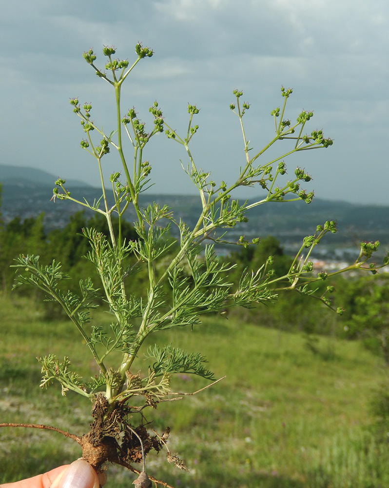 Stängelblätter 2 - 3 fach gefiedert, schmal lineal, blaugrün