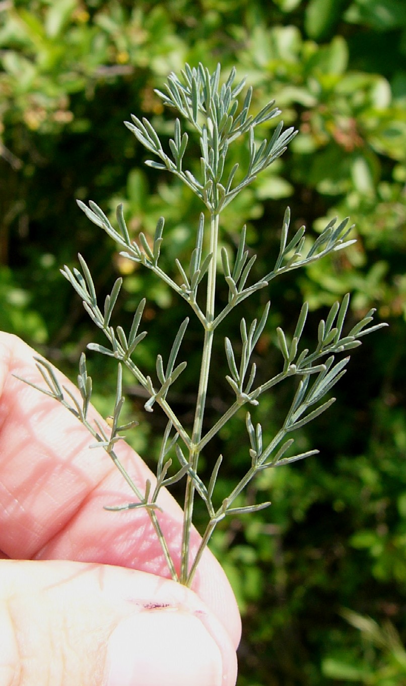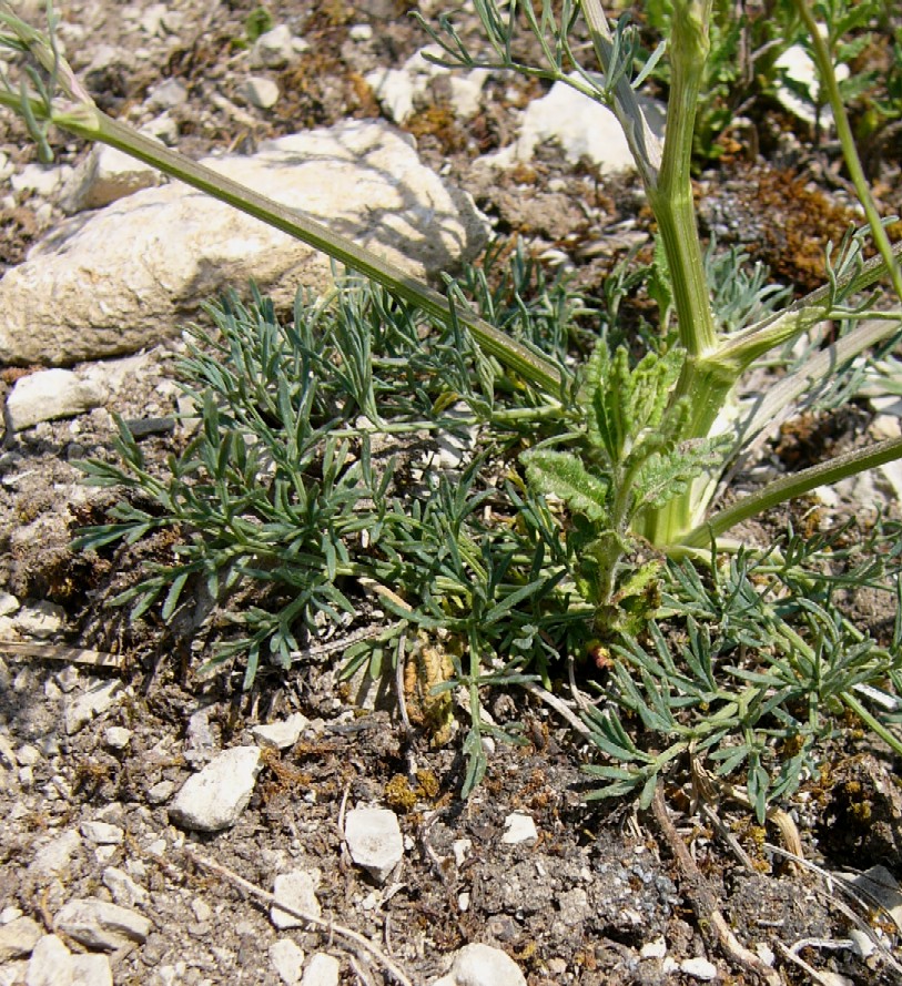 Stängelblätter 2 - 3 fach gefiedert, schmal lineal, blaugrün