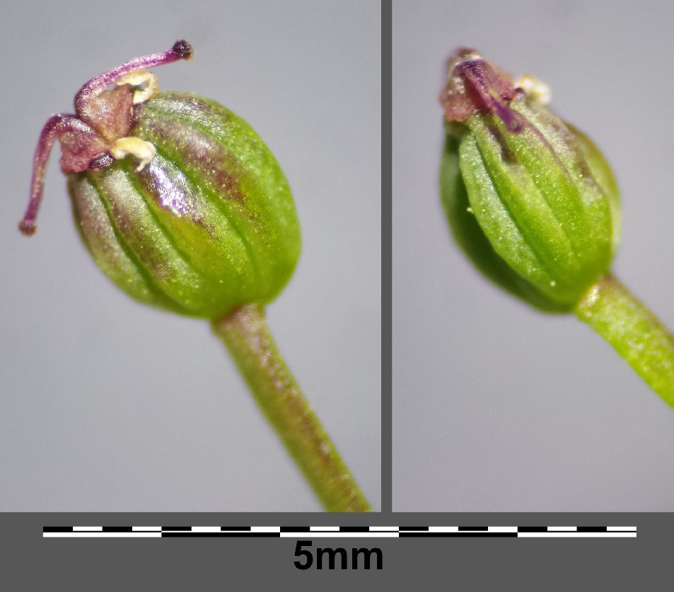 Fruchtstiele 1 - 4 mm lang, Frucht eiförmig, kahl, 2,3 mm lang, glatt