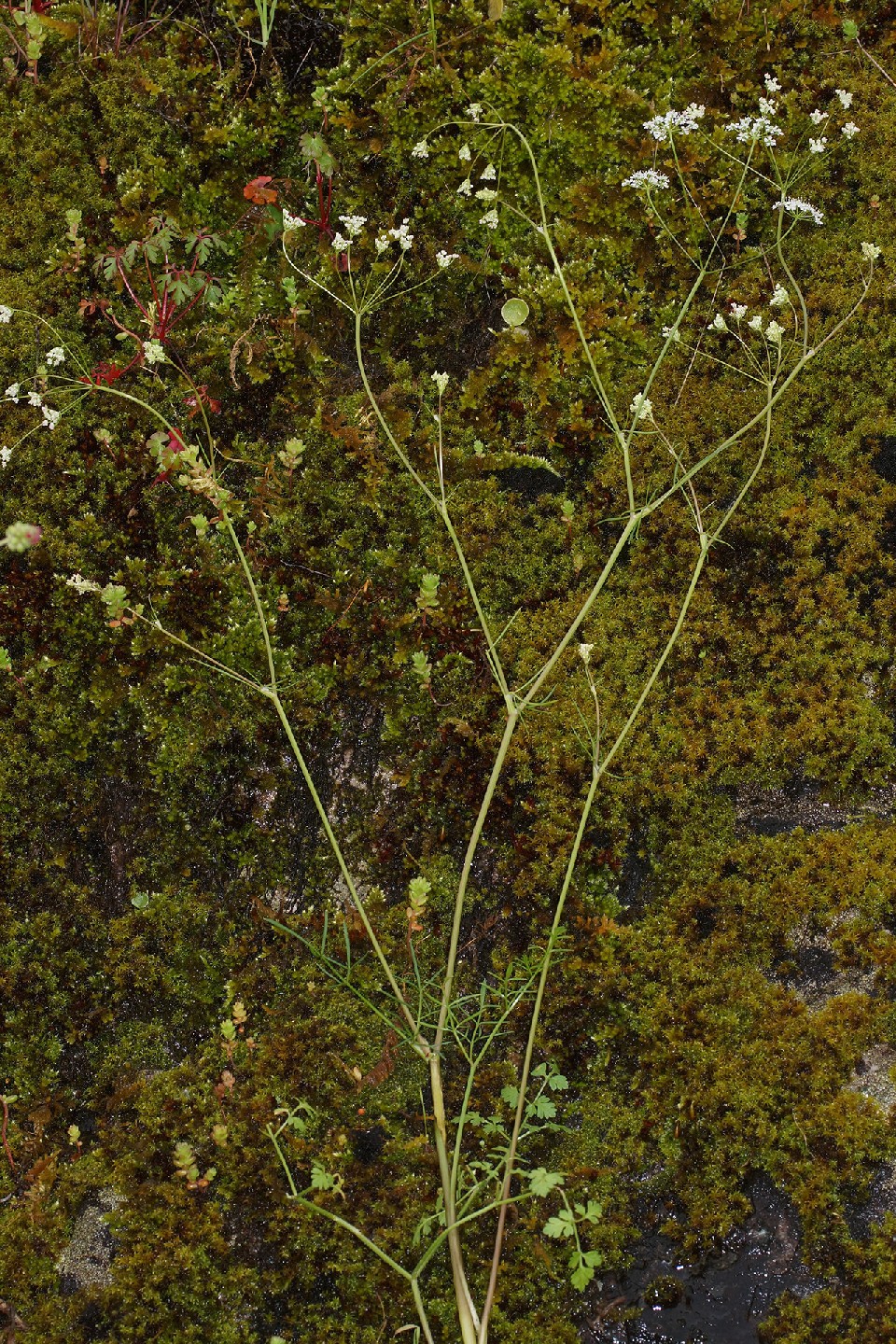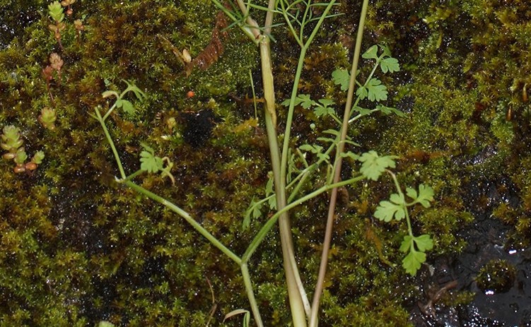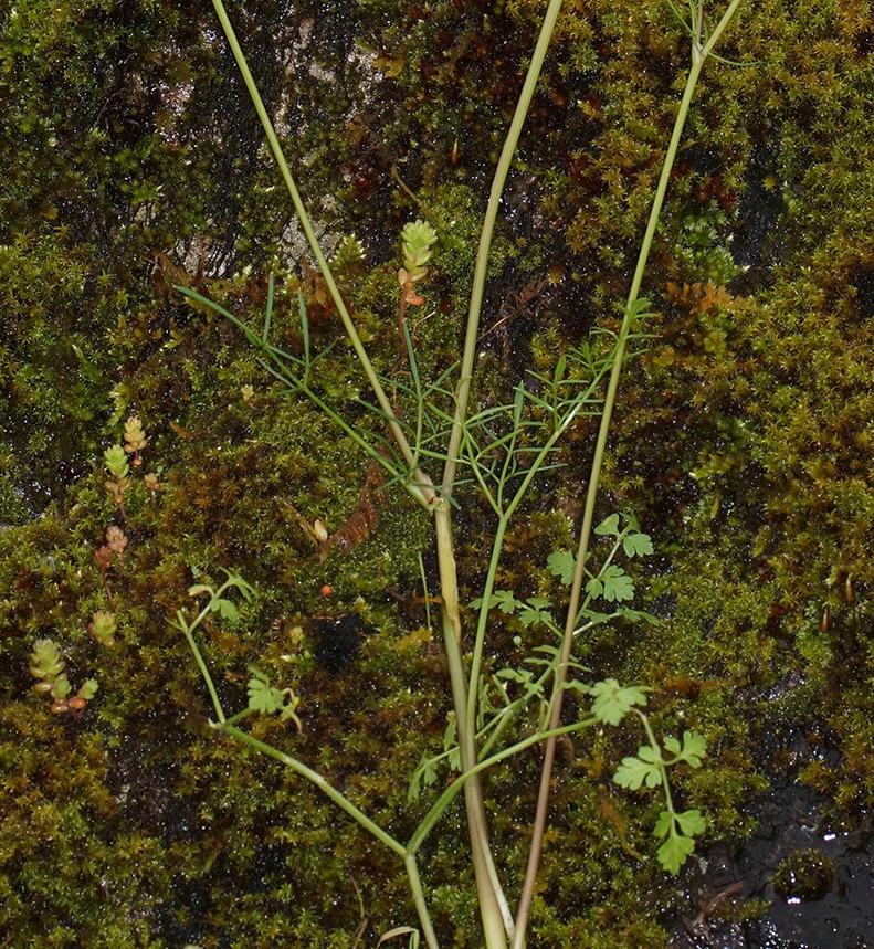 | Stängel gebogen, verzweigt Mittlere Blätter kahl, Blattscheiden membranös, nicht bewimpert Endabschnitte der Grundblätter mit eirundlichen, gelappten Abschnitten > 1