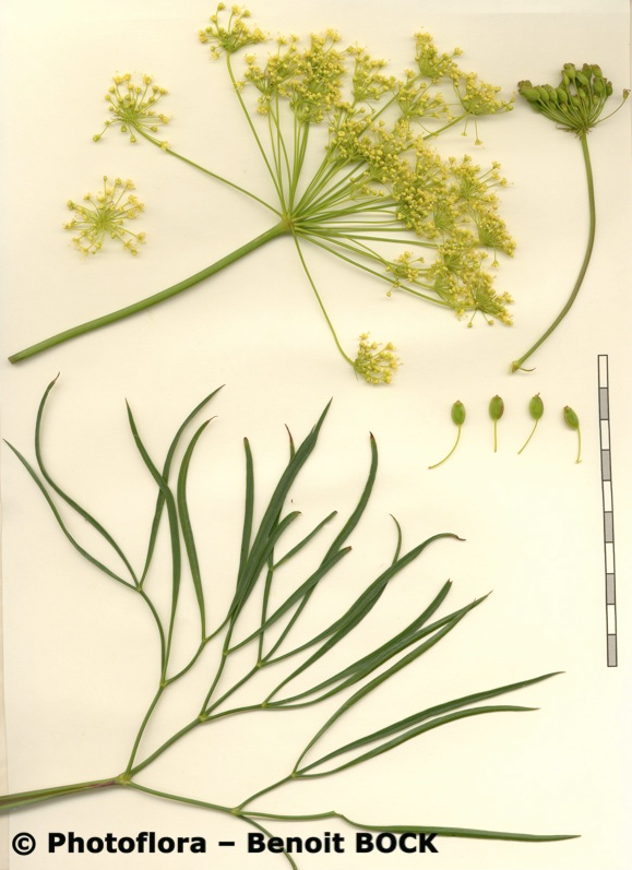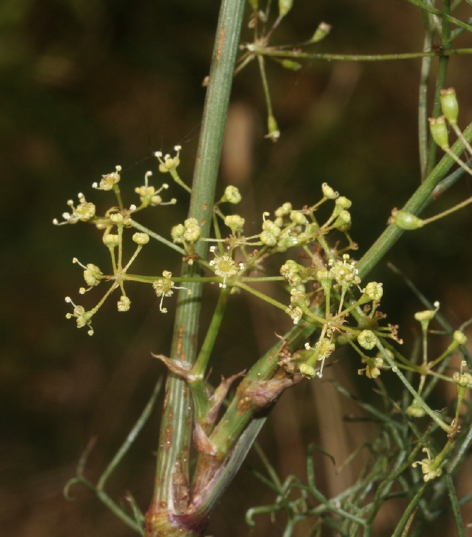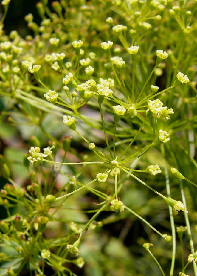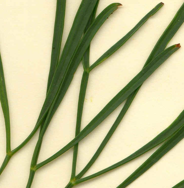 Fruchtstiel 1 - 3 mal so lang wie die Früchte Fiedern letzter Ordnung 25 - 30 mm lang, 0,5 - 0,8 mm breit, rinnig