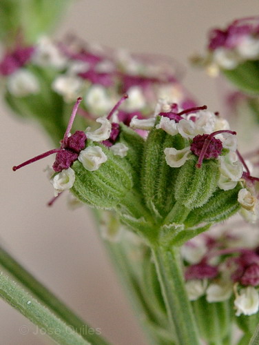 Blüten weiß, 1,3 mm lang, Antheren 0,5 mm lang,