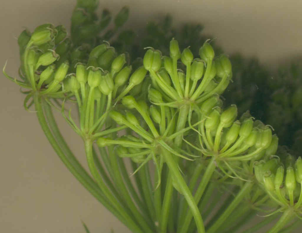 Doldenstrahlen zur Fruchtzeit zusammenneigend, verdickt