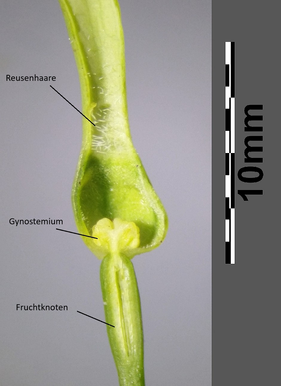 die Behaarung der Blütenröhre gefangen gehalten werden. Nachdem die Blüte