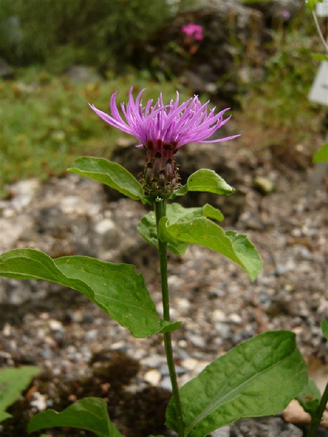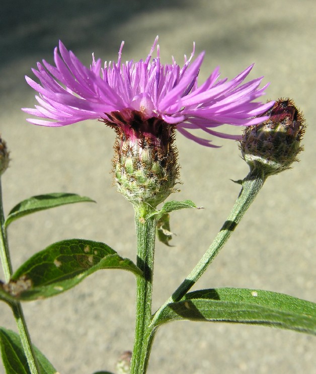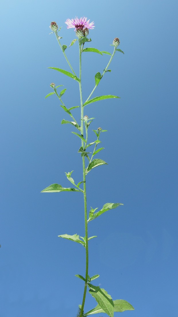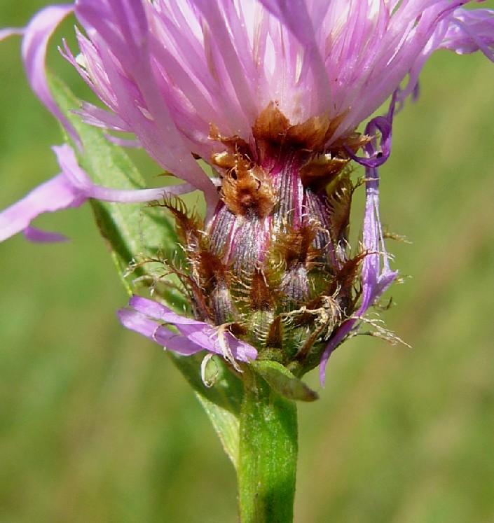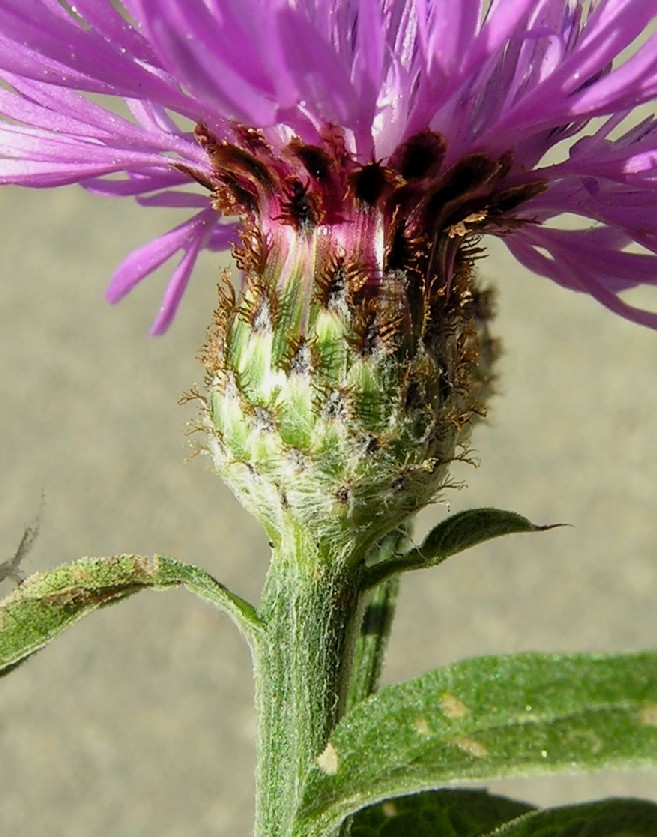 Pflanze 20 - 80 cm groß Anhängsel grün- schwarz, da die Hüllblattanhängsel die grünen Teile der Hülle nicht vollständig bedecken Hülle walzlich, 10 - 11 mm im Durchmesser Obere Stängelblätter lanzettlich, am Grund verschmälert