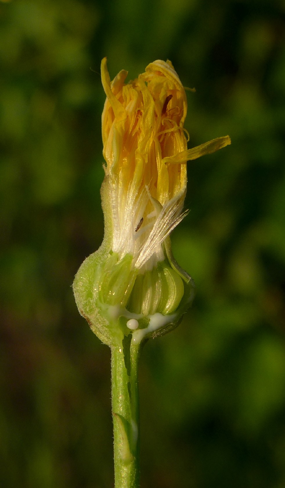 Pappus nicht länger als die Hülle Pflanze mit weißem Milchsaft Obere Stängelblätter gezähnt, stängelumfassend, mit langen spitzen Öhrchen Obere Stängelblätter beiderseits fast kahl