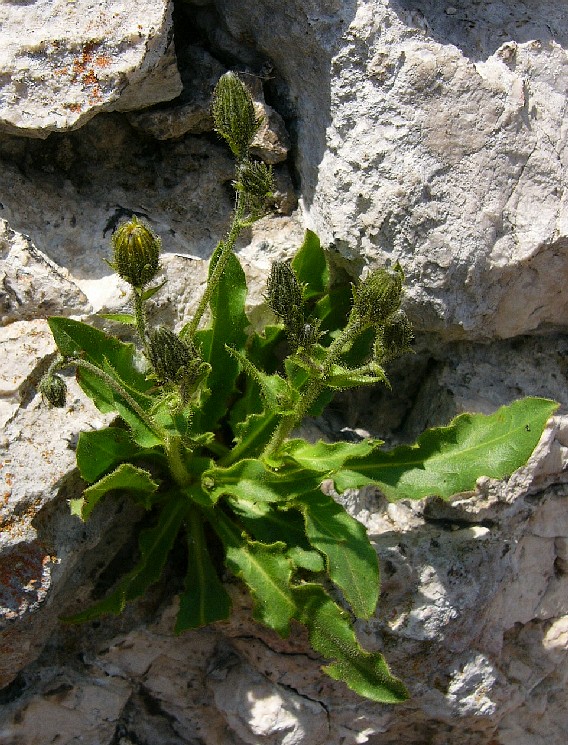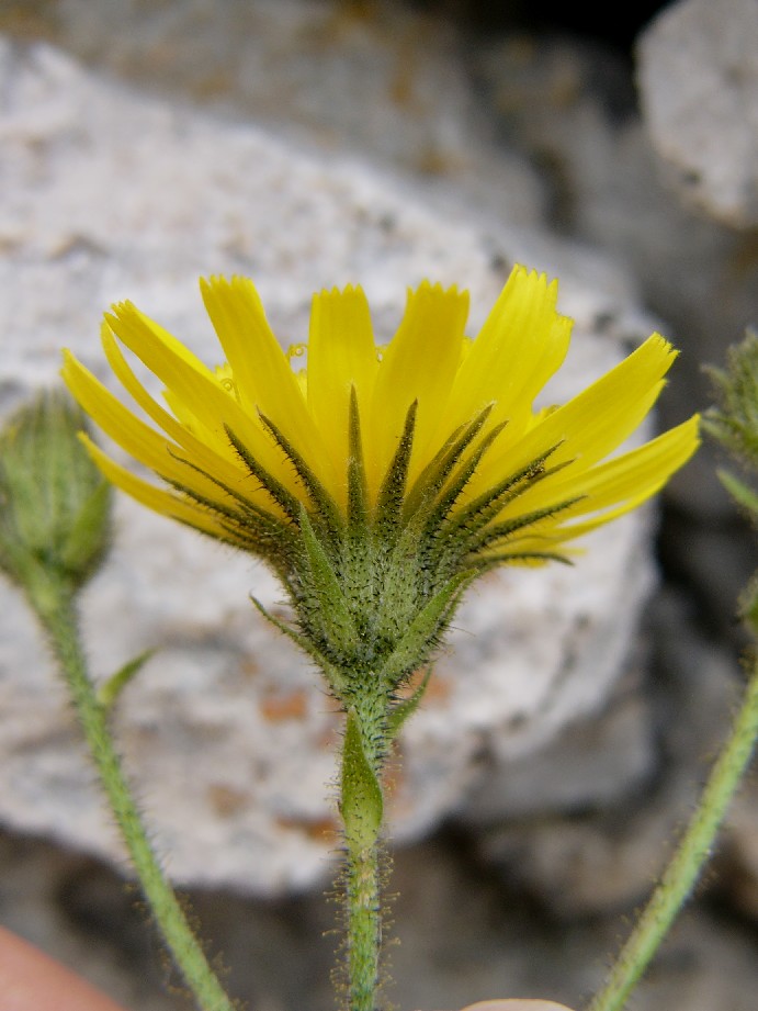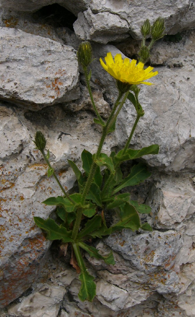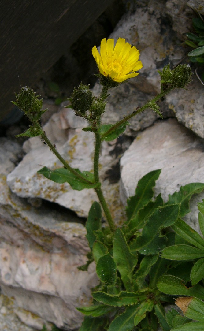 Blütenstand hoch gabelig, mit 5 - 25 Köpfchen Blüten hell- bis sattgelb mit gewimperten Blütenzähnen Hülle eikugelig, hell- bis olivgrün Hüllblätter locker anliegend bis etwas abstehend, schmal, langspitzig, schwarz drüsig Stängel drüsig, 3 - 6 Stängelblätter, alle stängelumfassend, Grundblätter gezähnelt bis buchtig gezähnt Grundblätter spatelig bis lanzettlich,