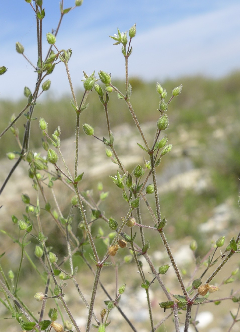 (1000 - 2200 m) Pflanze 2 - 4 cm hoch, kompakt, Blütenstand dicht drüsig langhaarig > Arenaria saponarioides