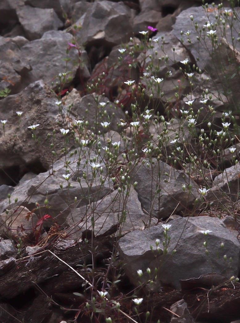 | Endemit in Südfrankreich Blüten mit 2 Griffeln, Kapsel mit 2 zweiteiligen Zähnen aufspringend Pflanze 10 - 20 cm hoch, schlank, ohne vegetative Triebe > Arenaria provincialis