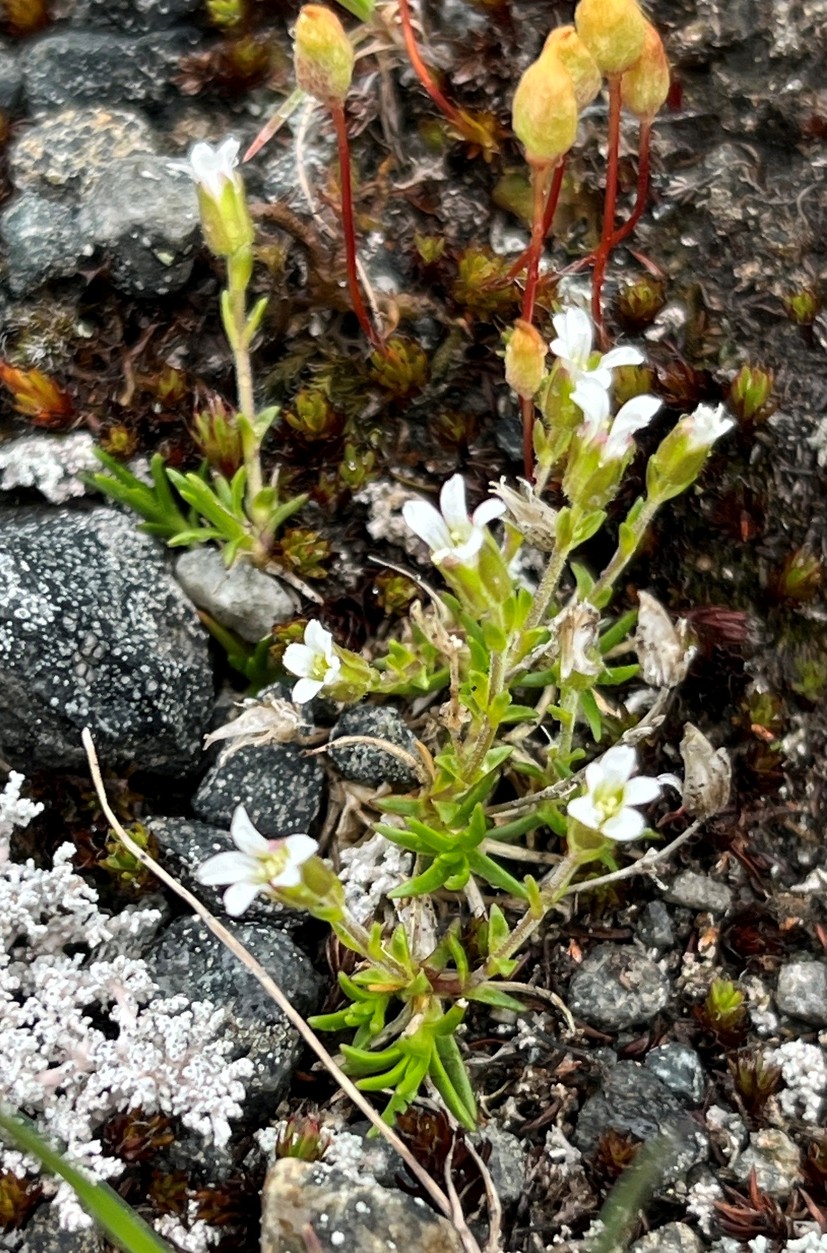 1 Pflanze 3 - 10 cm hoch, dichtrasig, Kronblätter 4 - 7 mm lang, 0,5 - 1 mm breit, Adern undeutlich