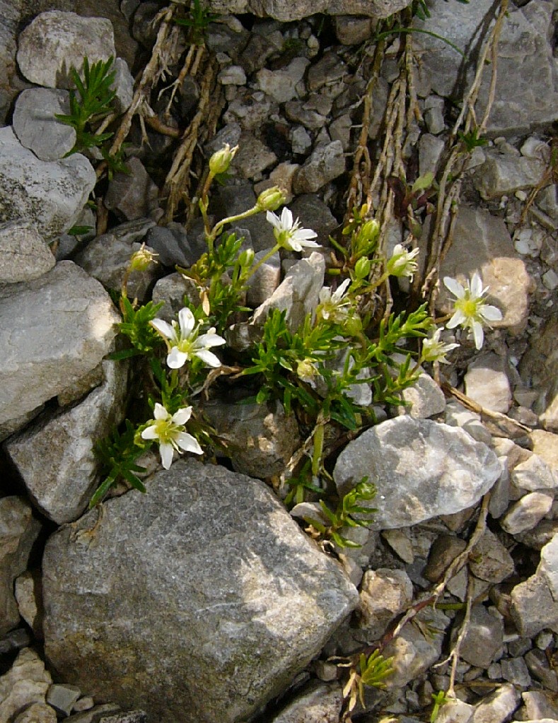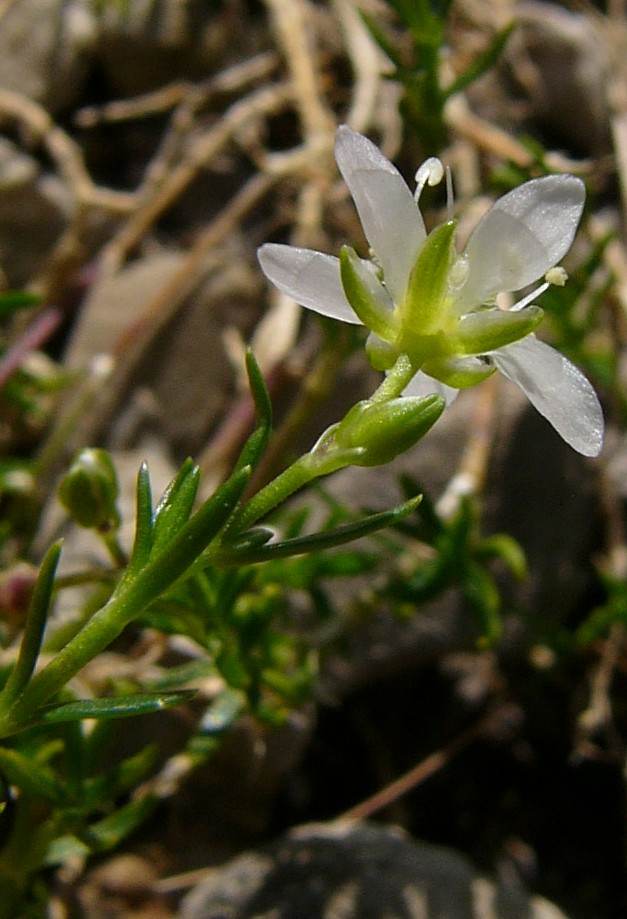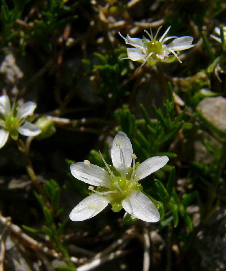 Moehringia - Blüten mit 5 Kronblättern, Kronblätter länger als die Kelchblätter, Blätter linealisch, +/- kahl, grün