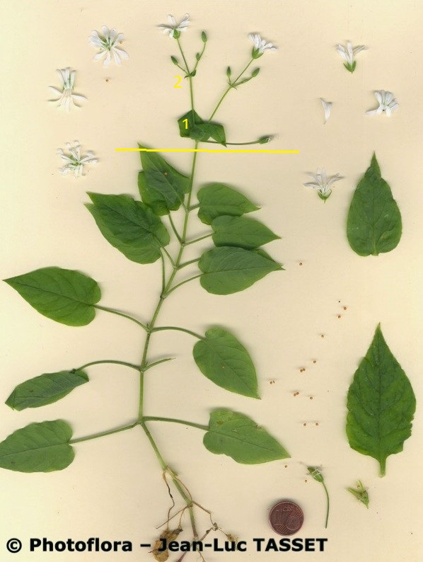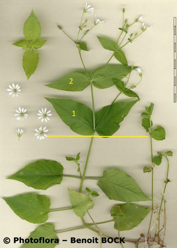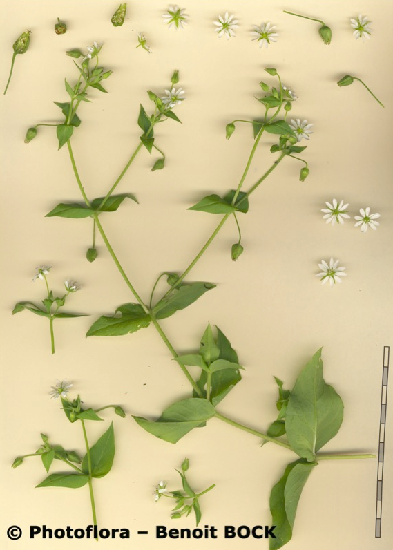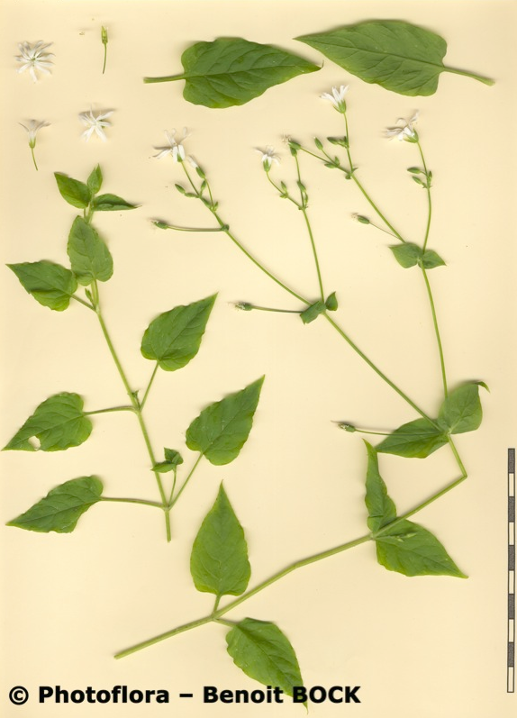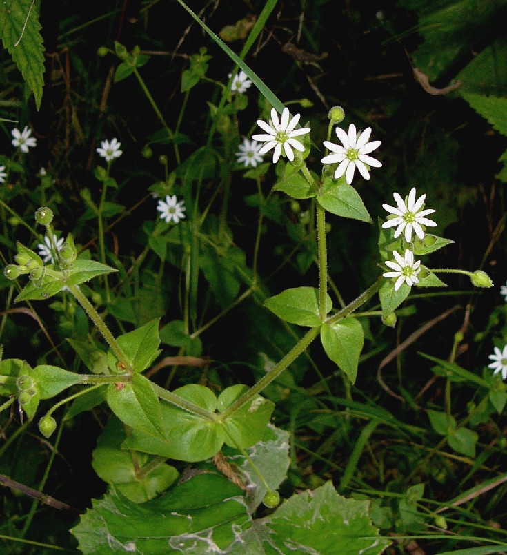 Stellaria - Kronblätter länger als der der Kelch, Stängel rundum behaart, Blätter eiförmig