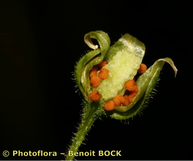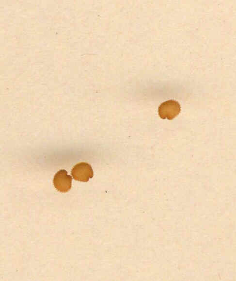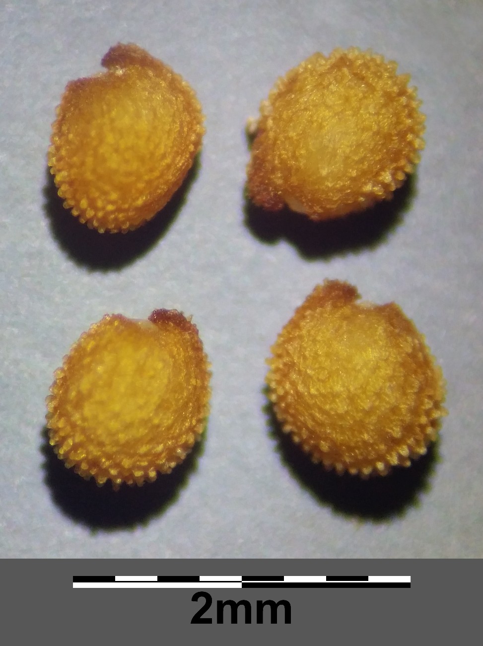 Samen 1 - 1,3 mm lang, orange, am Rand mit kurzen halbkugeligen Papillen