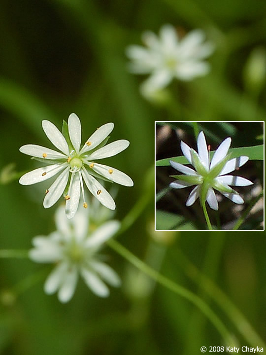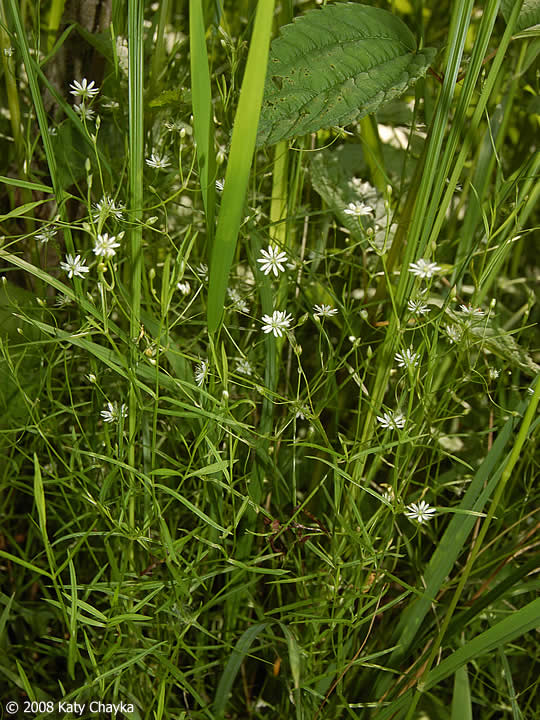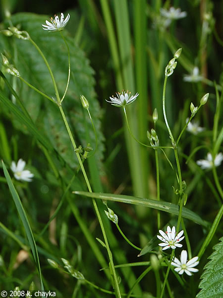 Stellaria - Kronblätter länger als der der Kelch, bis zum Grund eingeschnitten, Blätter schmal lanzettlich