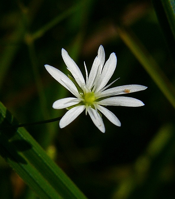 aufrecht, robust Blüten 15 - 30 mm im Durchmesser Kronblätter nicht bis zum Grund eingeschnitten > Stellaria holostea