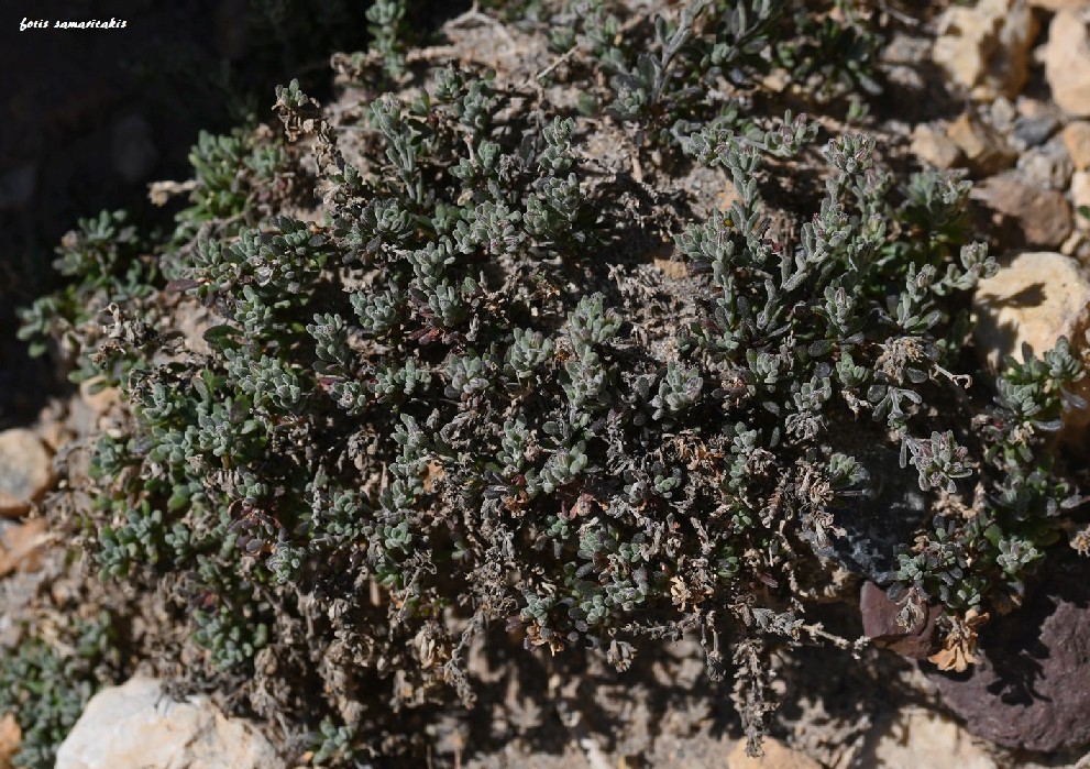 kretischer Hochgebirge (Lefka Ori, Psiloritis) Blüten in vielblütigen, doldenähnlichen, endständigen Büscheln, Blätter und Kelch mit drüsigen und nichtdrüsigen Haaren > 2