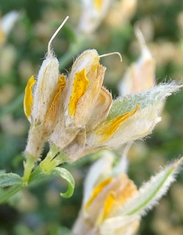 Fahne aufrecht, 13 mm lang, am Rücken behaart, Flügel kahl, Schiffchen, seidenhaarig, ca. so lang wie Fahne und Flügel