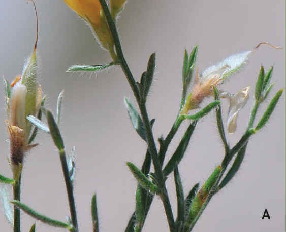 S- Pindos, E- Central Blüten meist zu 2 - 4 Blätter 5 - 7 mm lang, Brakteolen in der Mitte des Blütenstiel ansetzend > Genista millii agg. |