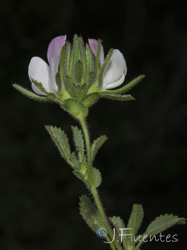 oder weißlich, +/- sitzend, Fahne vor dem Aufblühen rosa, außen kahl, Schiffchenspitze weiß oder rosa,