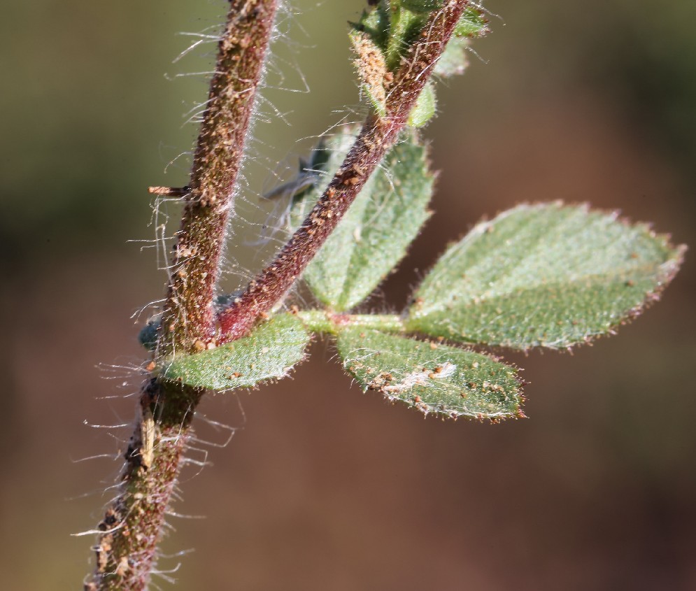2 Stängel mit drüsigen und langen nichtdrüsigen Haaren