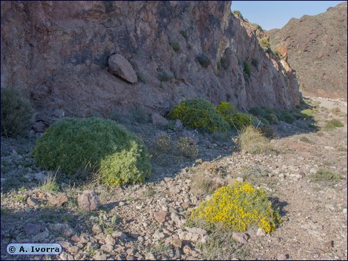 XII - V, Steinige Macchie, Felsen (0 - 500 m) Synonyme: English name: Weltweite Verbreitung: Etymologie: Ulex canescens ist ein Endemit der Cabo de Gata in Almeria.