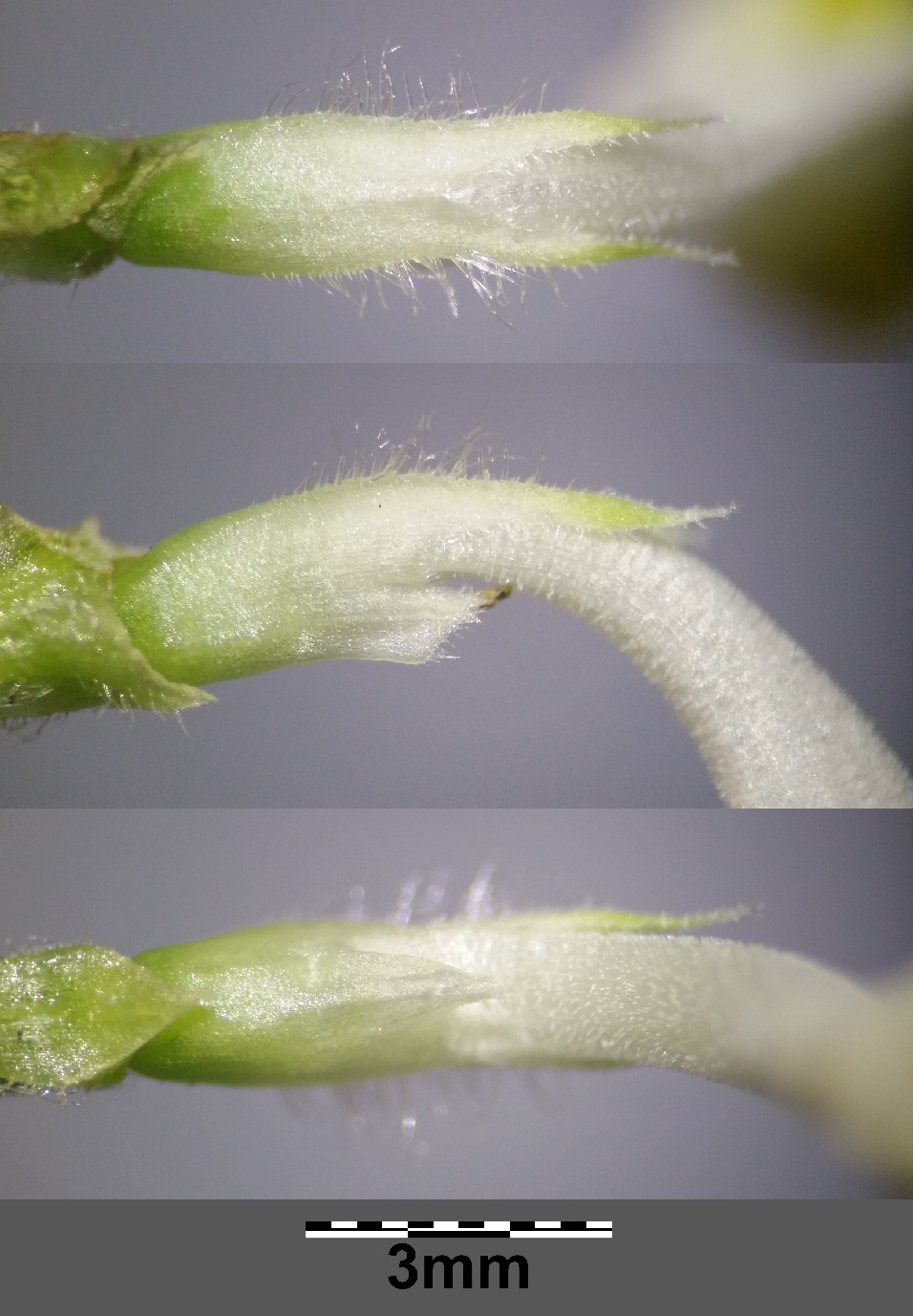 Kelch 5 - 8 mm lang, mit 4 ungleich langen, spitzen, auf den Adern behaarten Zähnen
