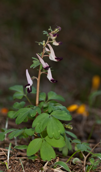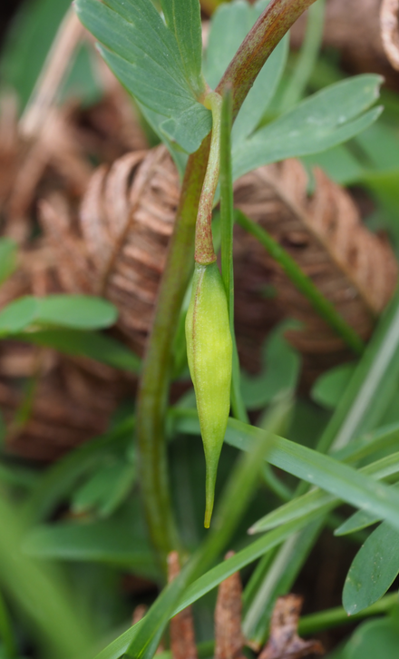 zierlich, mit Sprossknolle, Stängel unverzweigt, mit 2 Stängelblättern,