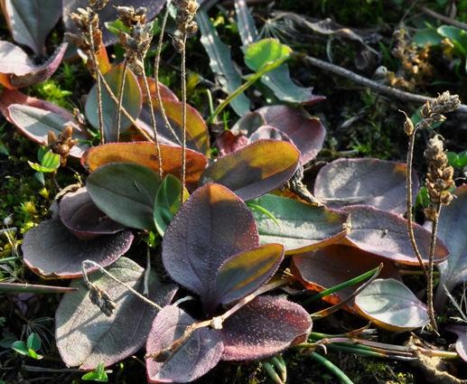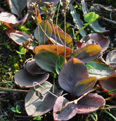 Ähre 1 - 6 cm lang, lockerblütig, oft rot überlaufen, Schaft aufrecht oder bogig aufsteigend, am Grund deutlich abstehend behaart Kapseldeckel kegelig, Kapsel mit 8 - 12 Samen Blätter breit eiförmig, höchstens 1,5 mal so lang wie breit, 3 - nervig, dicklich, derb, grün oder rot überlaufen, oberseits +/- behaart, am Grund kurz keilig