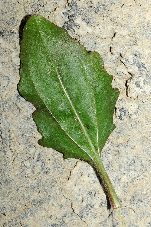 2 Schaft aufrecht oder bogig aufsteigend, Blätter eirundlich, höchstens 1,5 mal so lang wie breit, Blattgrund schwach keilig, Spreite 3- nervig