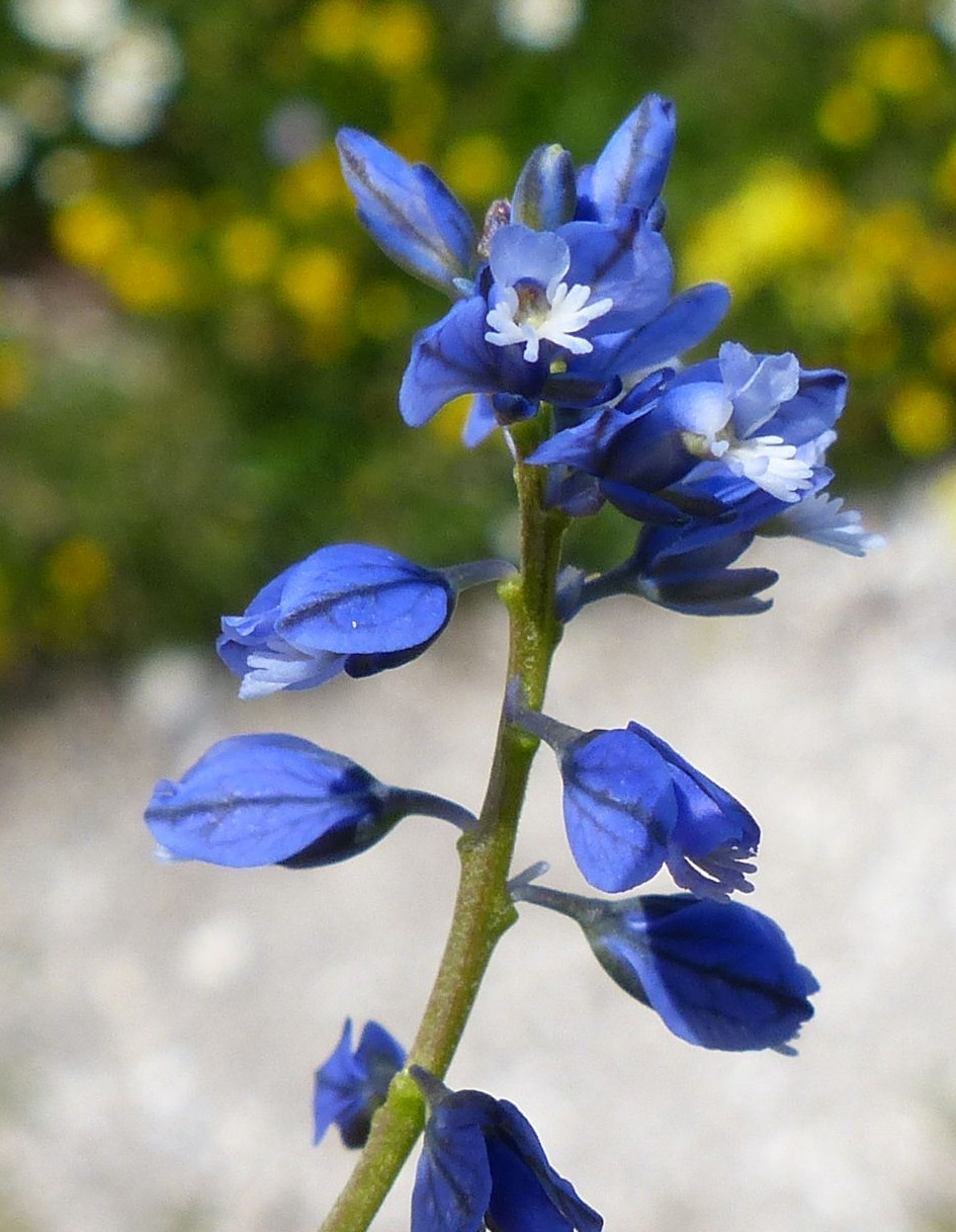 Blütenstand 15 - 30 mm lang, mit 5 - 20 Blüten, Krone tiefblau oder blauviolett, 4 - 5 mm lang,