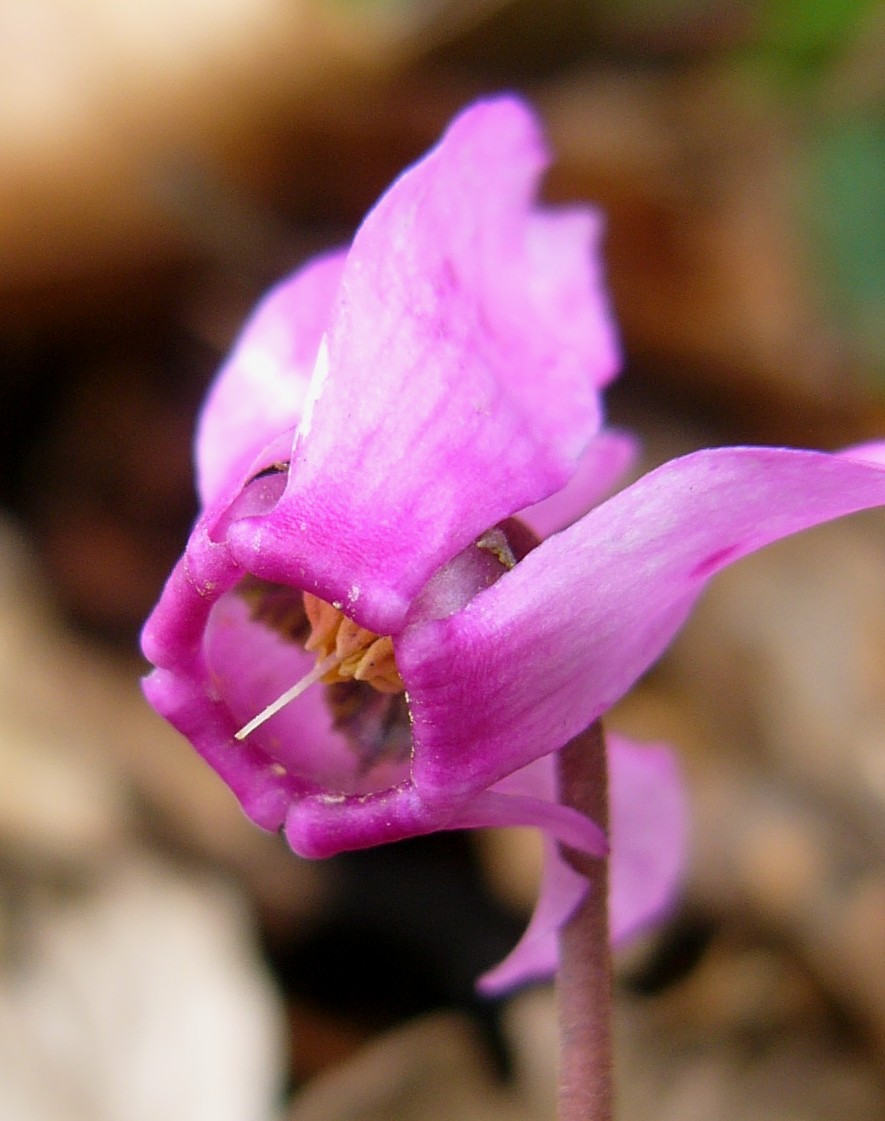 Pflanze 5 - 15 cm groß Fruchtstiele eingerollt Blätter 3 - 8 cm lang, unterseits rotviolett Blüten rosa, Kronzipfel 17 - 25 mm lang > 4 |