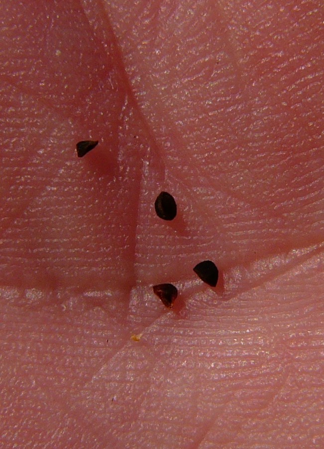 Samen ca. 1 mm lang, schwarz, kantig